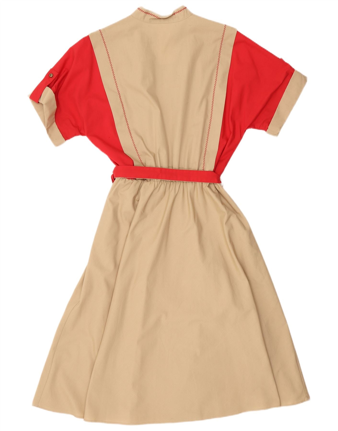 Damska sukienka maxi VINTAGE UK 16, duży beżowy blok kolorów