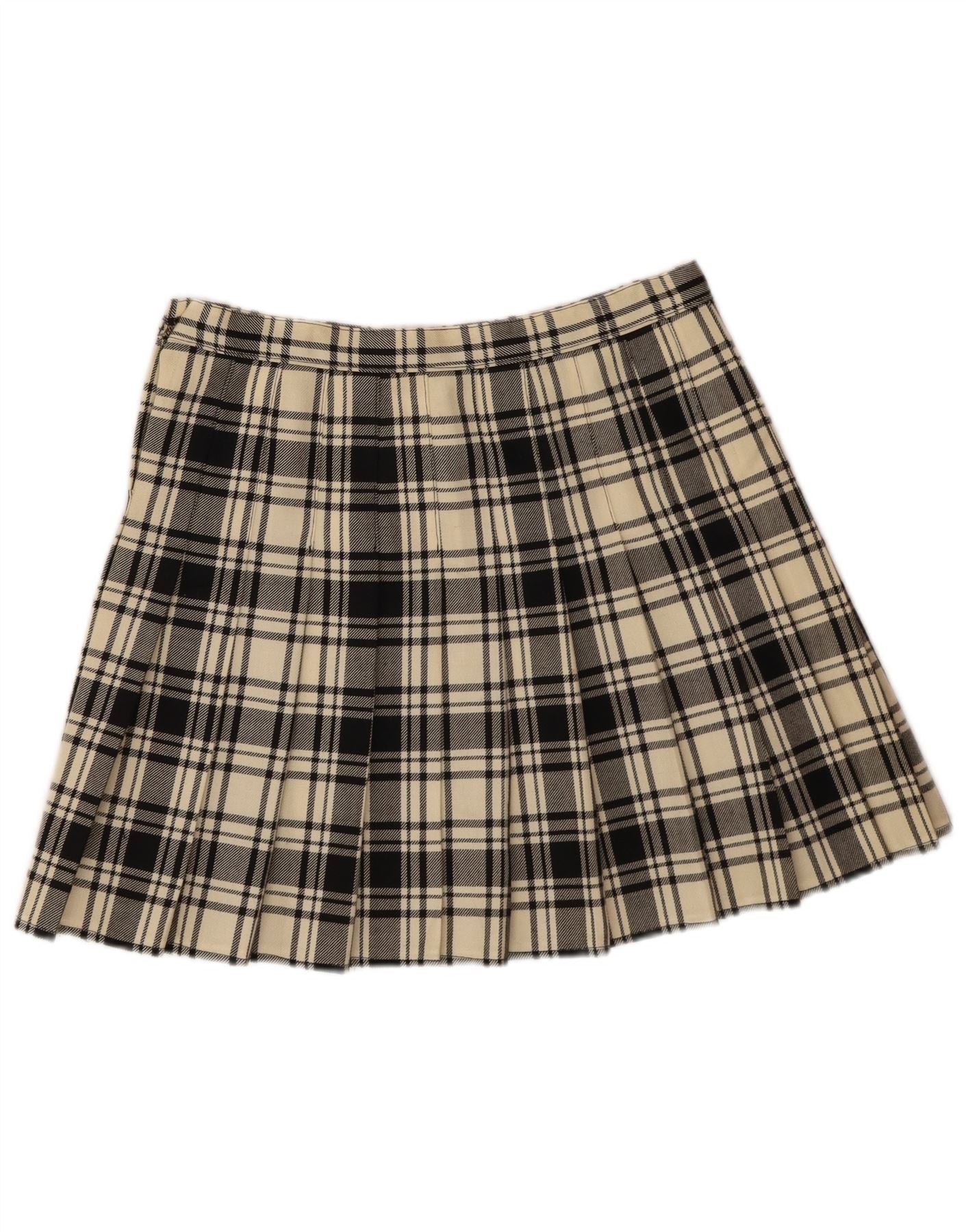 Damska spódniczka mini VINTAGE W30 Średnia biała krata z dziewiczej wełny