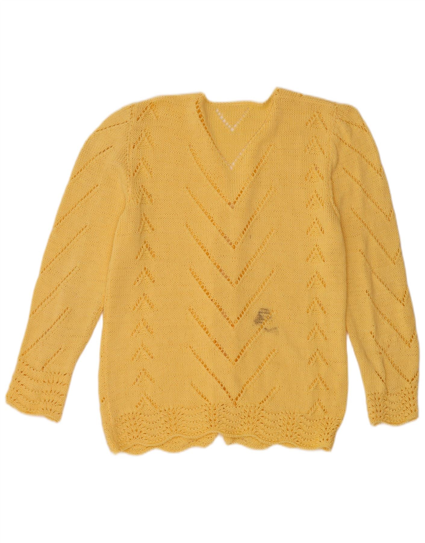 Sweter damski VINTAGE z otwartym kardiganem UK 12, średni żółty