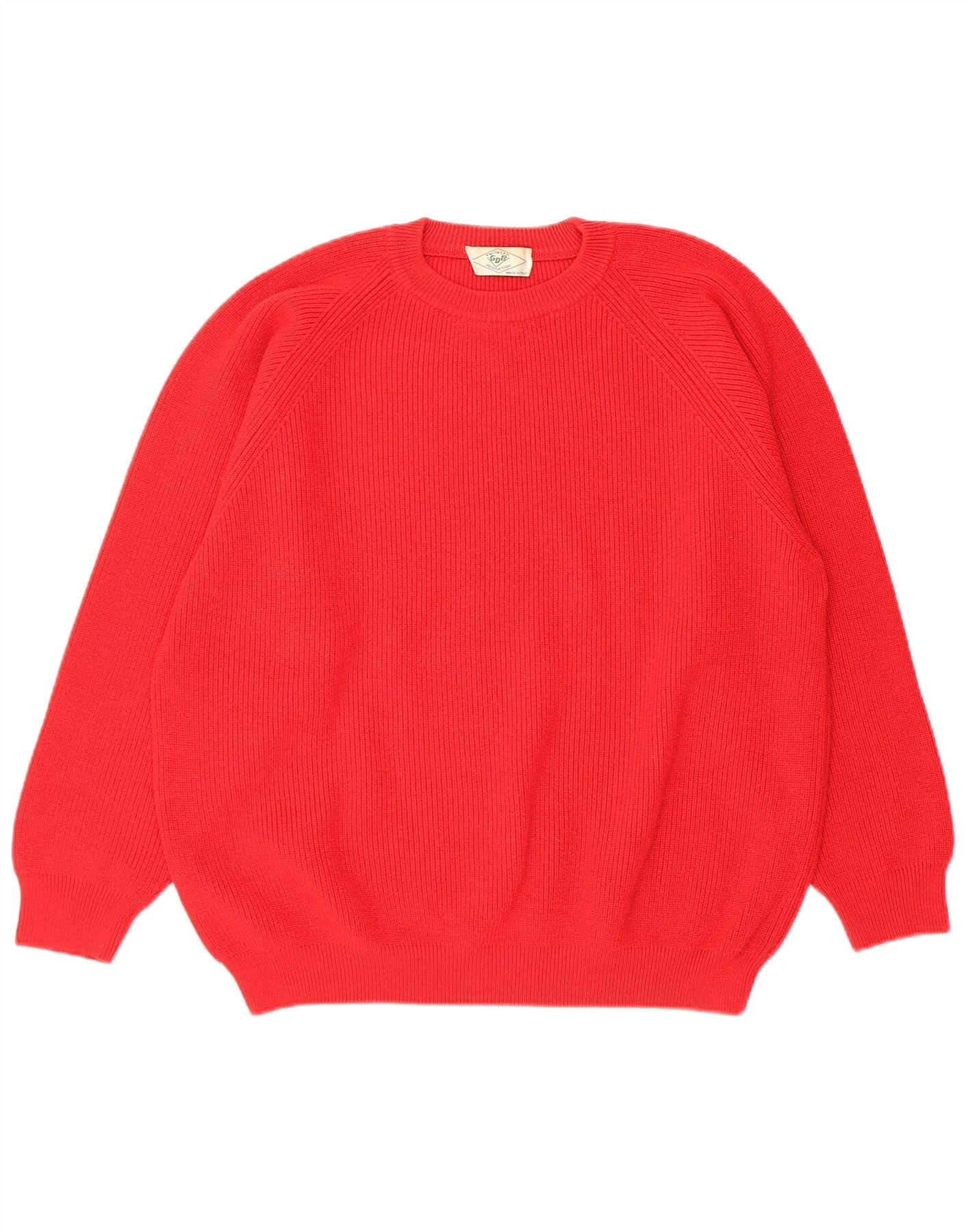 Vintage damski sweter oversize z okrągłym dekoltem UK 18 XL czerwona dziewicza wełna