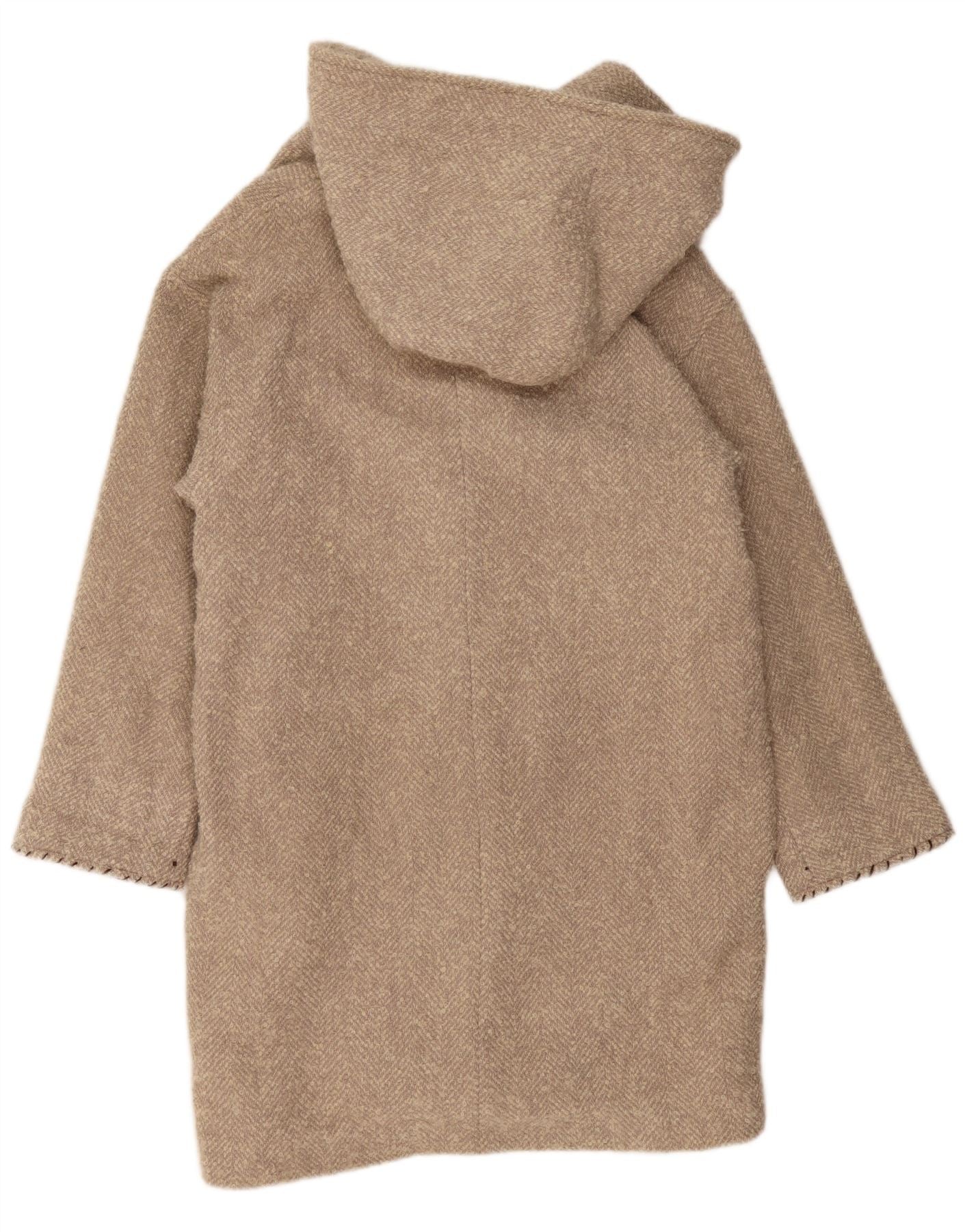 Damski płaszcz oversize z kapturem VINTAGE UK 10 Small Beżowy w jodełkę