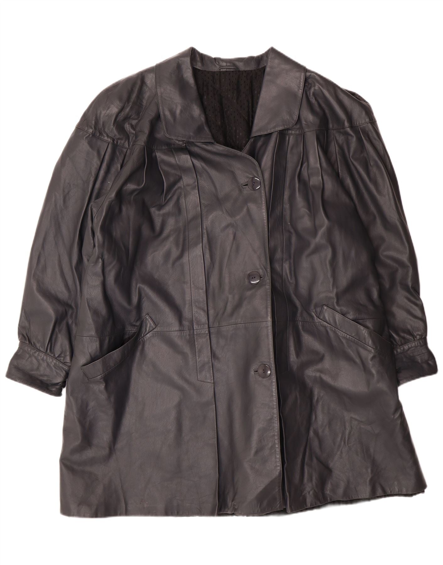 Vintage damski płaszcz skórzany oversize IT 44 średni czarny skórzany klasyczny