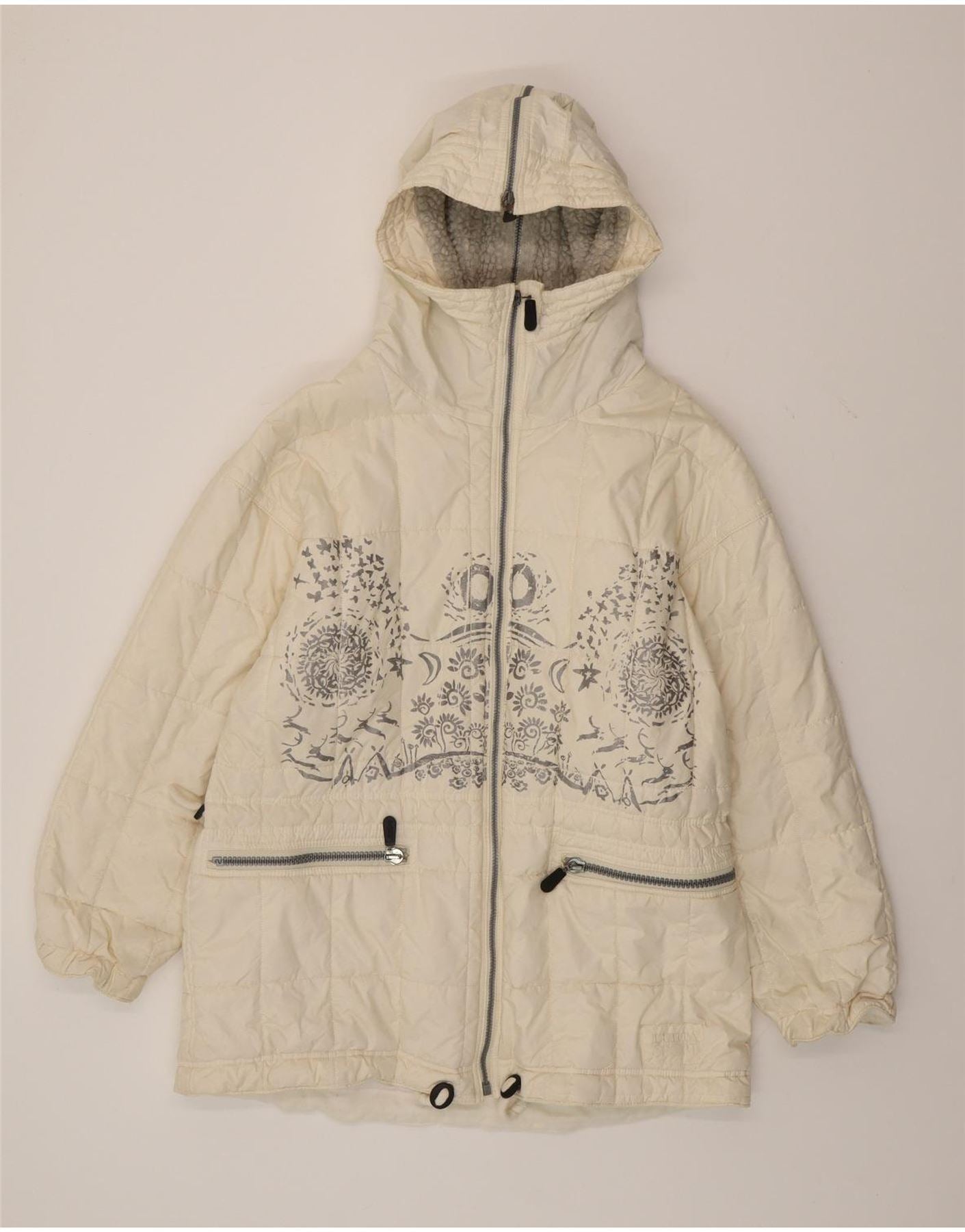 Vintage damski, oversize'owy, ocieplany płaszcz UK 10, mały, biały, poliester Paisley
