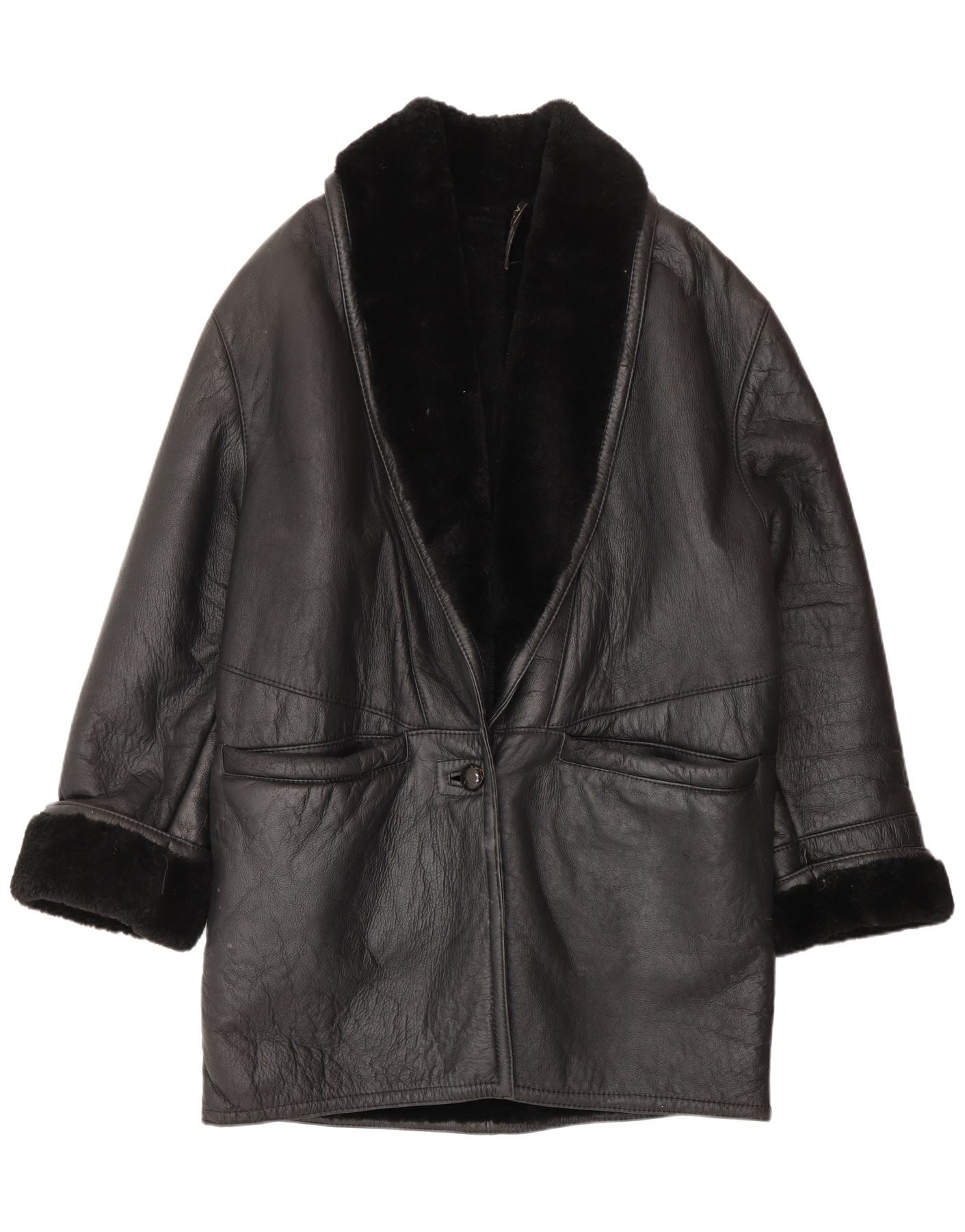 VINTAGE damski płaszcz oversize z owczej skóry UK 16, duży czarny