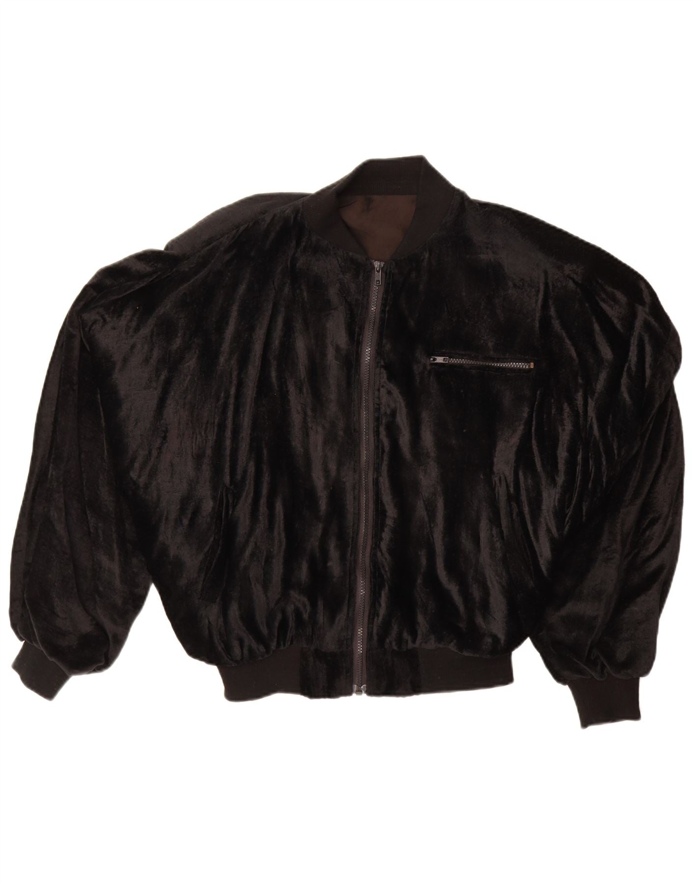 Damska kurtka bomberka oversize VINTAGE z aksamitu UK 14, średnia czarna wiskoza
