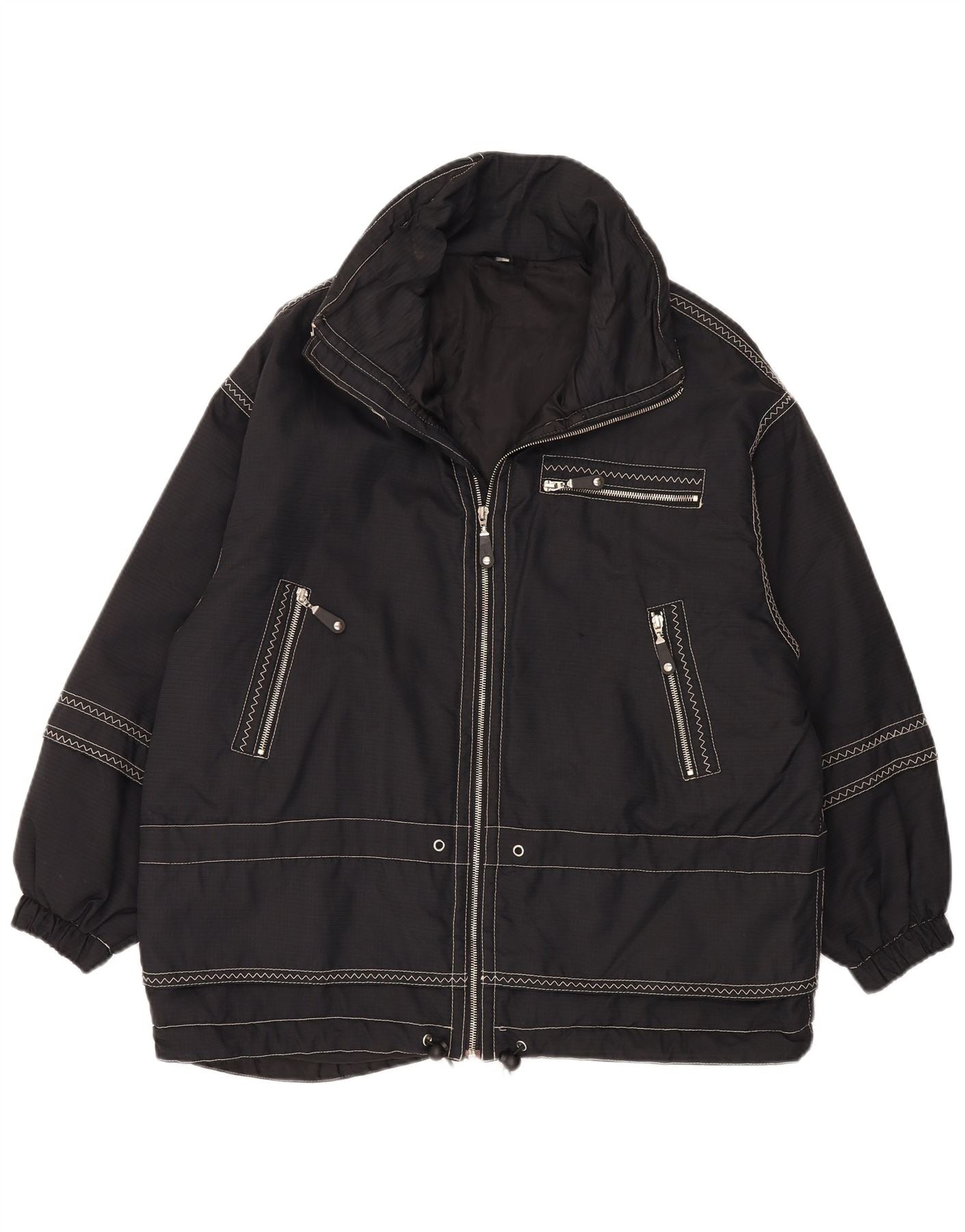 Vintage damska, oversize'owa kurtka wiatrówka IT 44, średni czarny poliamid