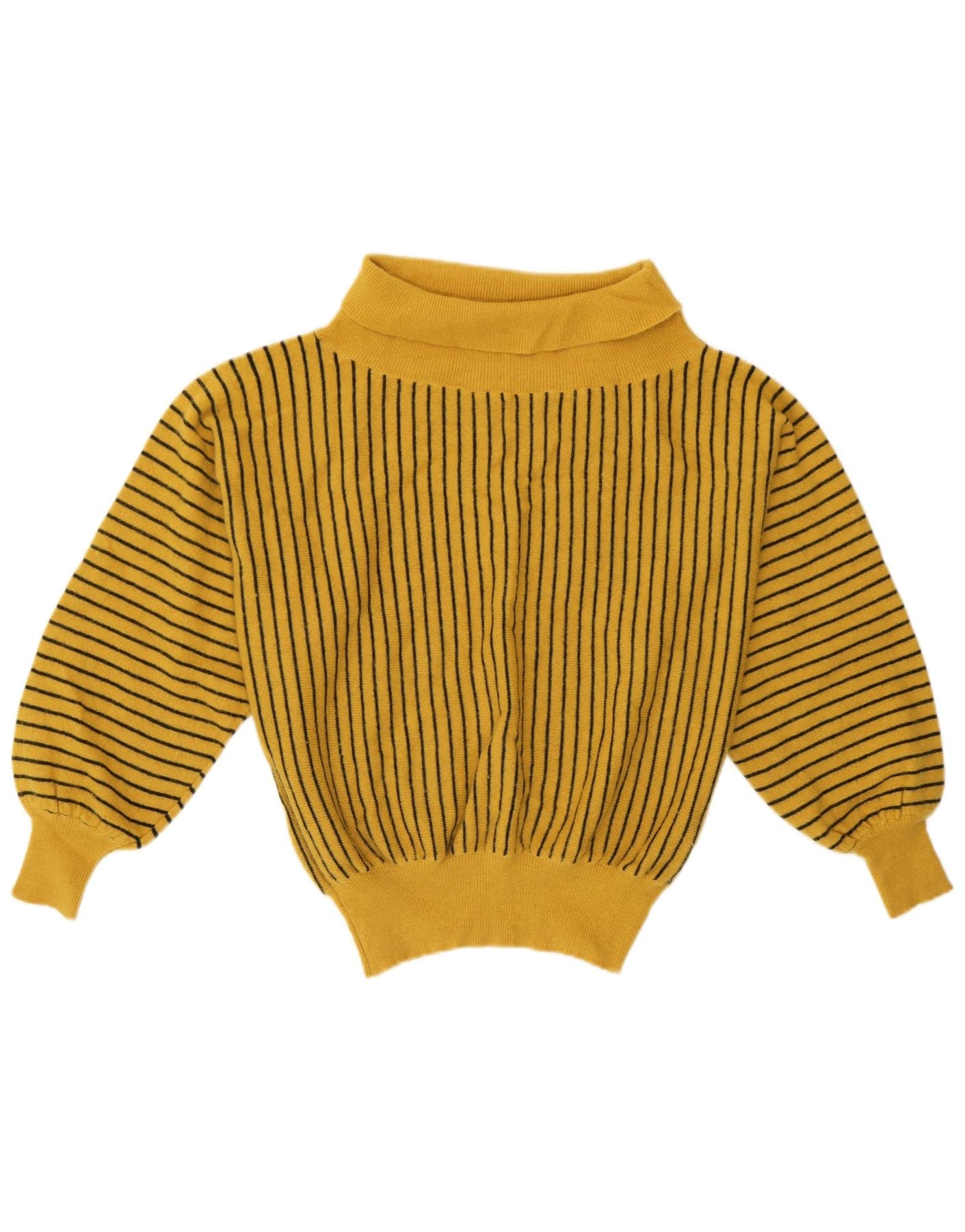 Vintage damski sweter z golfem UK 12 w średnie żółte paski
