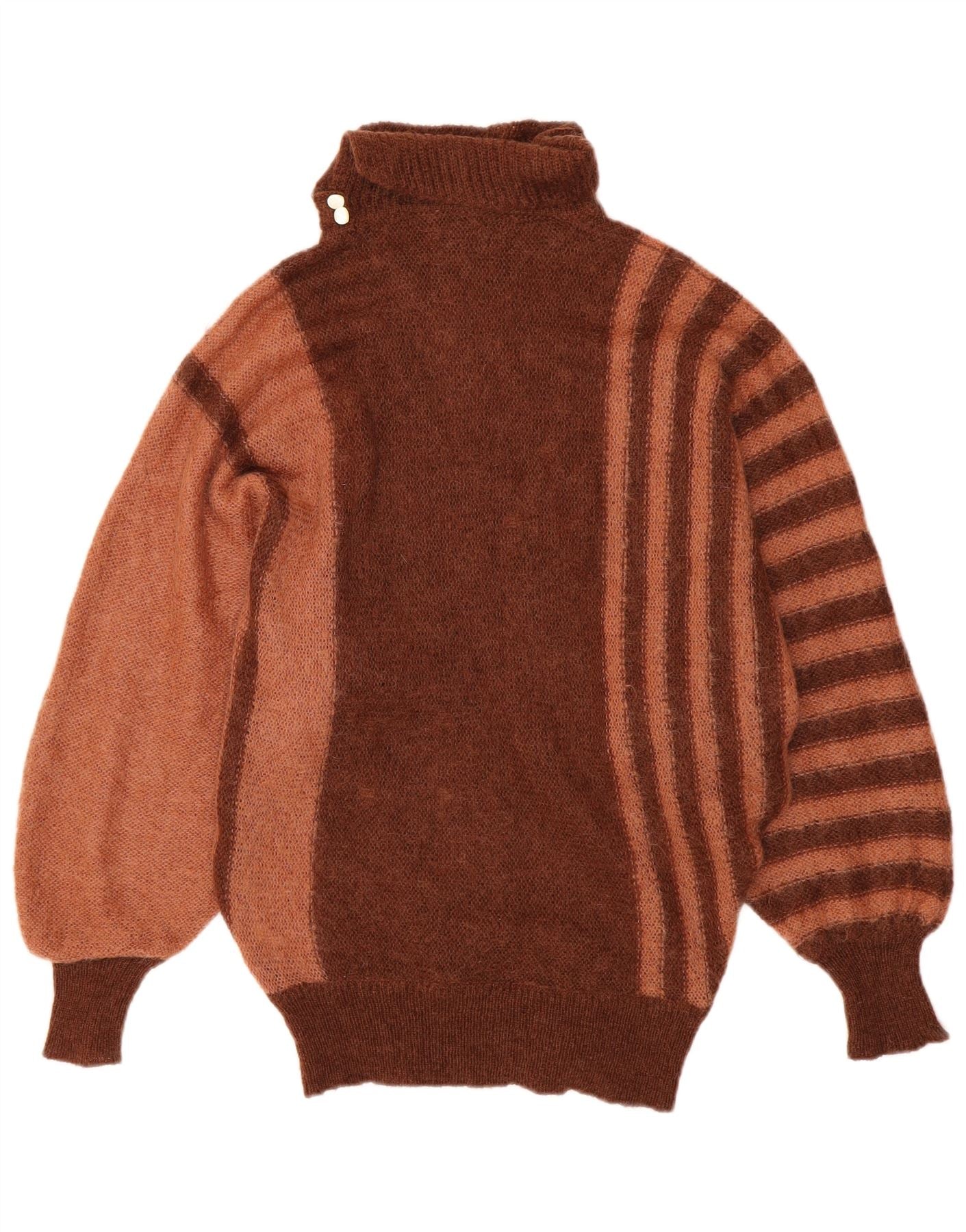Sweter damski VINTAGE z wywijanym dekoltem UK 14, duże, brązowe moherowe paski