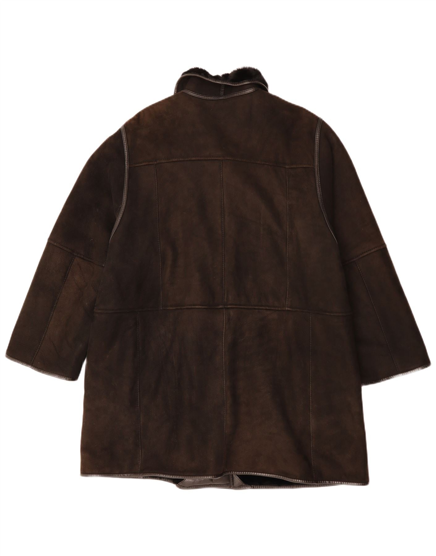 Płaszcz damski VINTAGE UK 14, duży, brązowy, skórzany