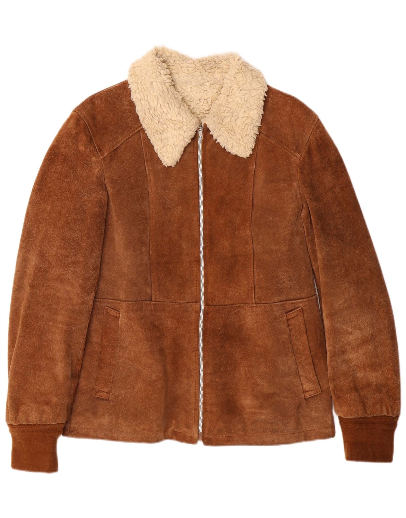 Damska kurtka shearling VINTAGE IT 46, duża brązowa skóra
