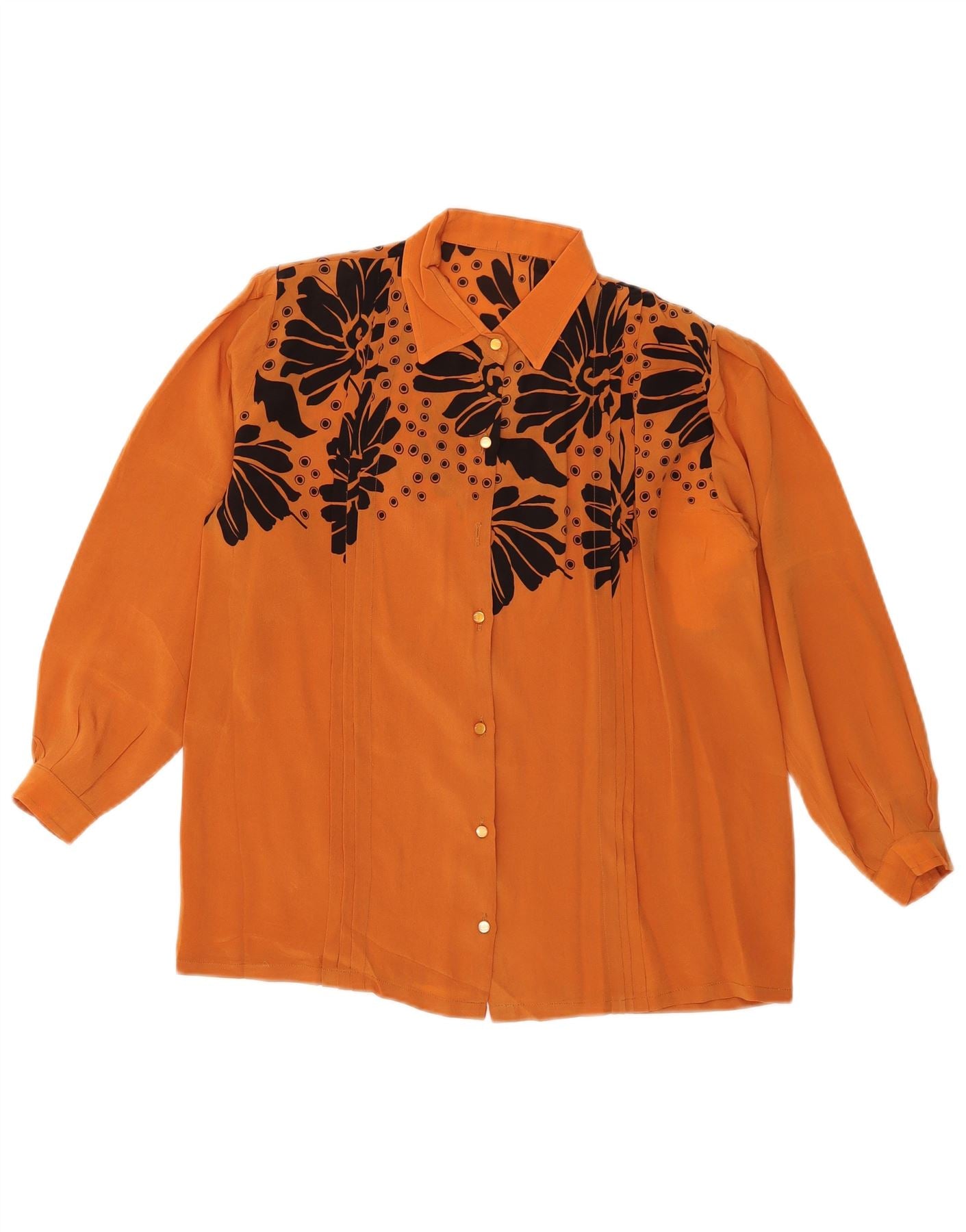 Damska bluzka koszulowa VINTAGE UK 16, duża, pomarańczowa, w kwiaty