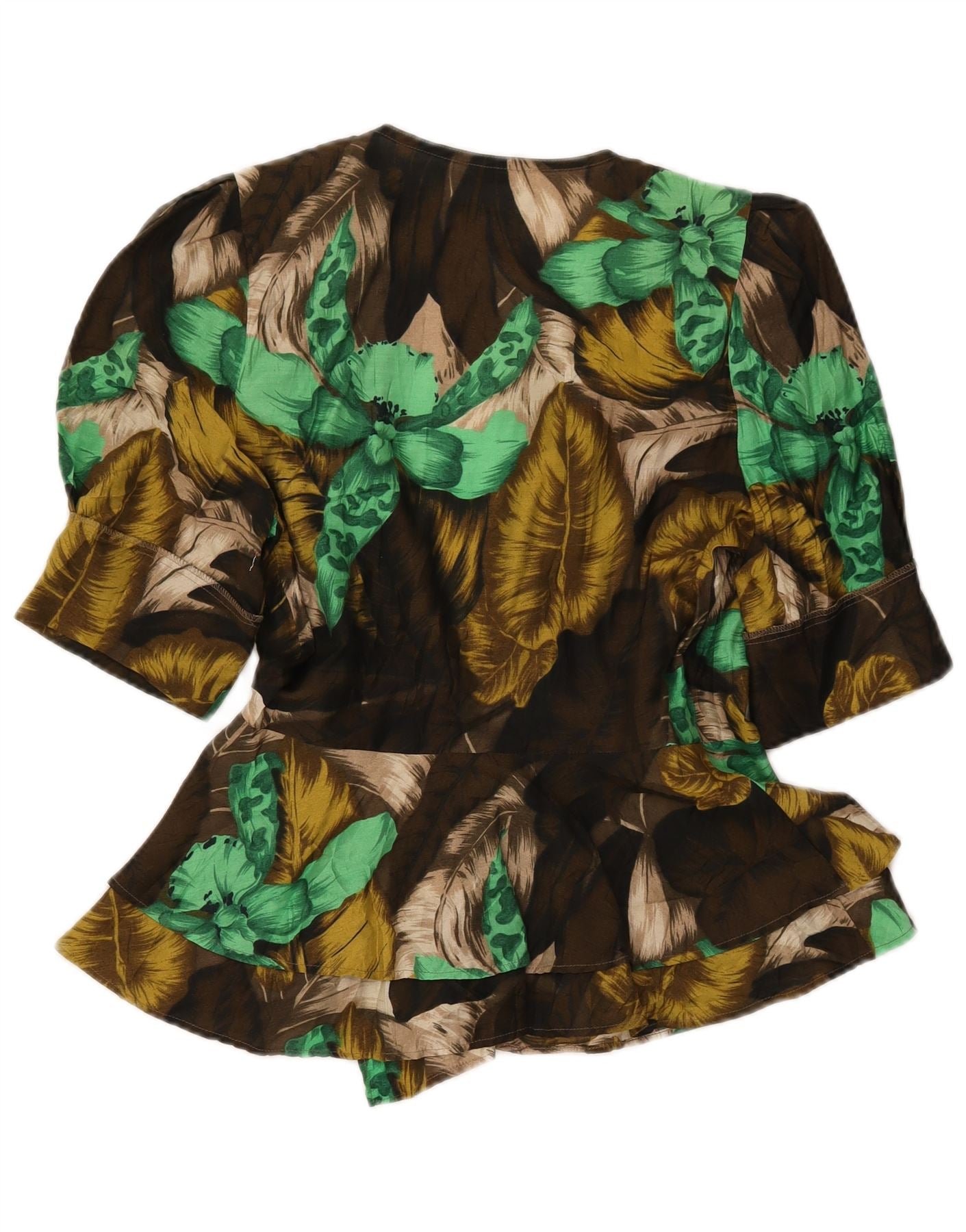 Damska bluzka koszulowa z krótkim rękawem VINTAGE IT 42 Średni khaki w kwiaty