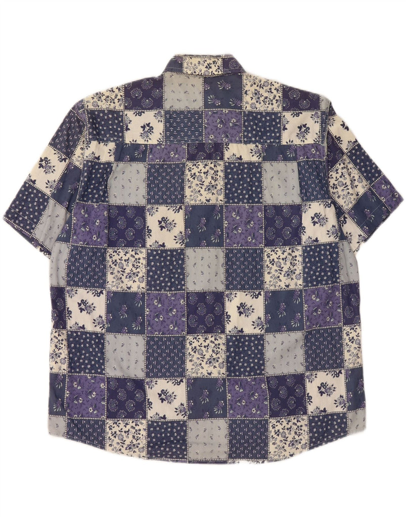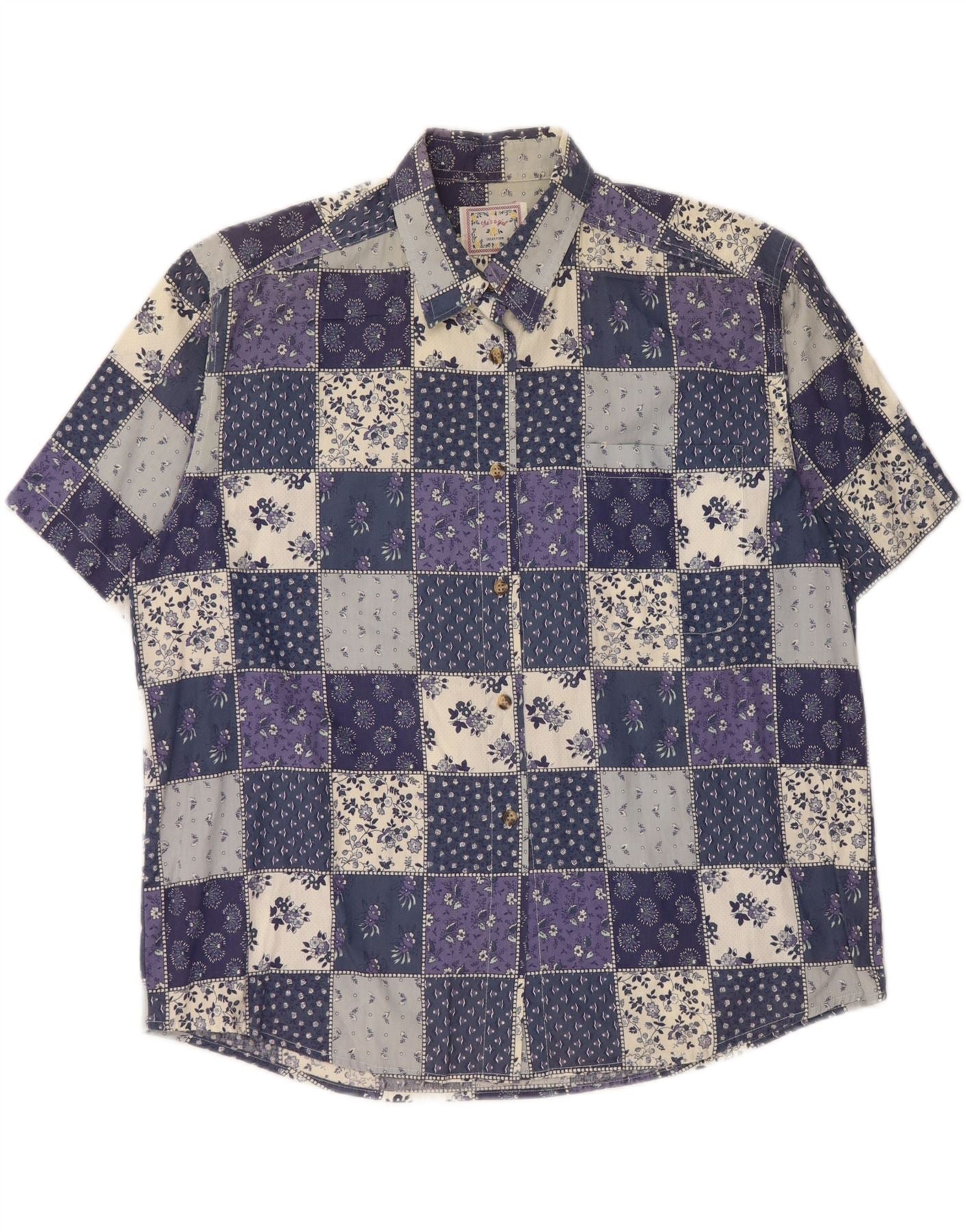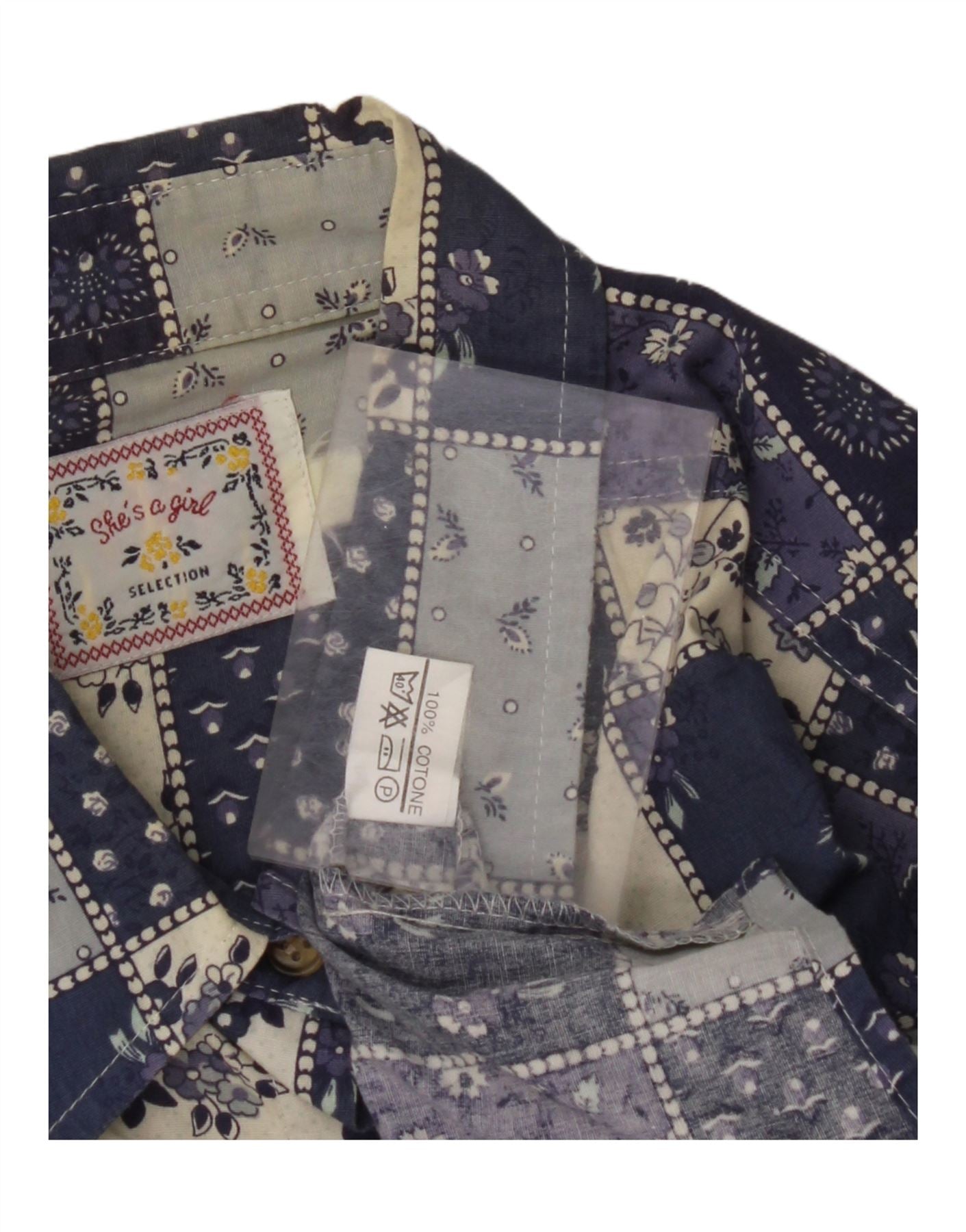 Koszula damska z krótkim rękawem VINTAGE UK 20 2XL Niebieska patchworkowa bawełna