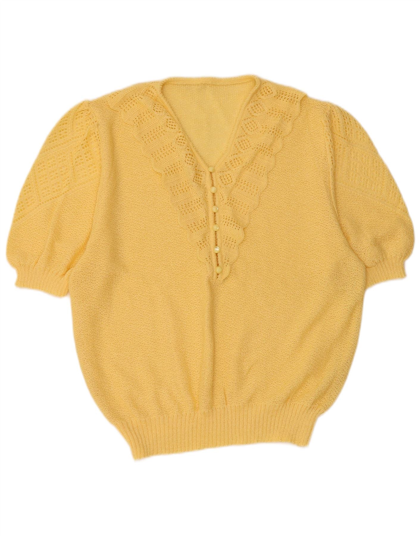 Sweter damski VINTAGE z krótkim rękawem i dekoltem w kształcie litery V, UK 16, duży, żółty