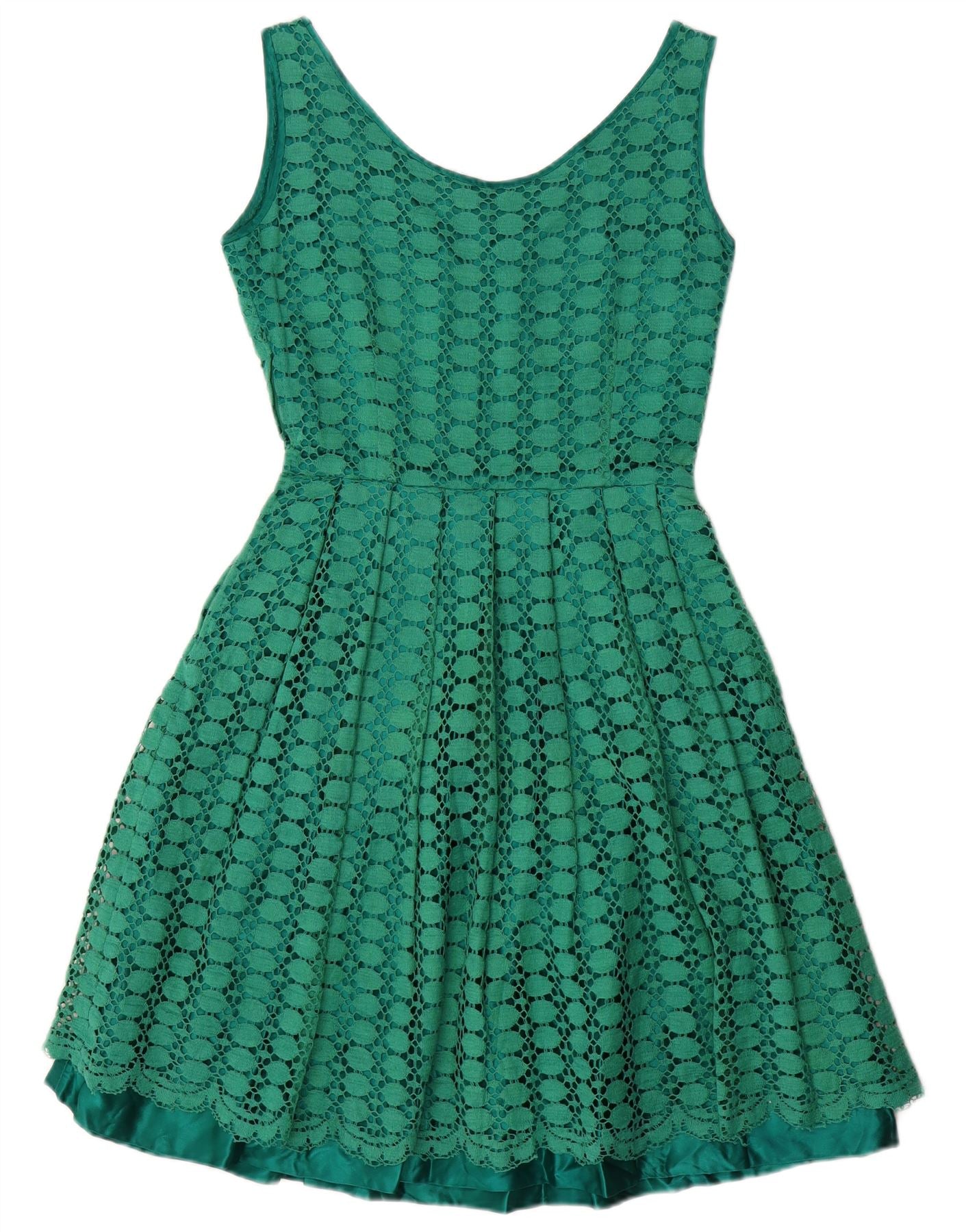 VINTAGE Damska sukienka o linii A bez rękawów UK 10 Small Green