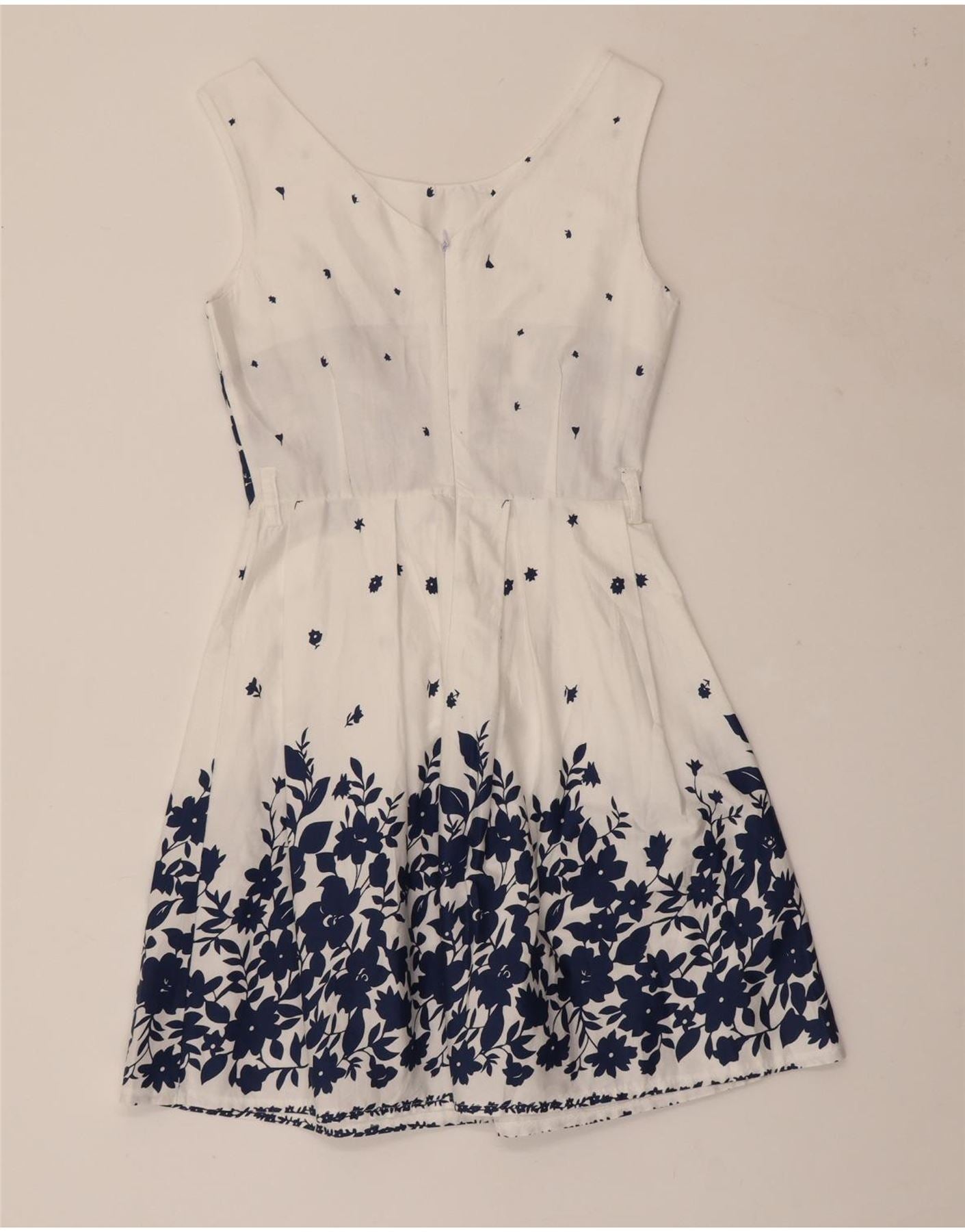 VINTAGE Damska sukienka o linii A bez rękawów UK 8 Mała biała bawełniana w kwiaty