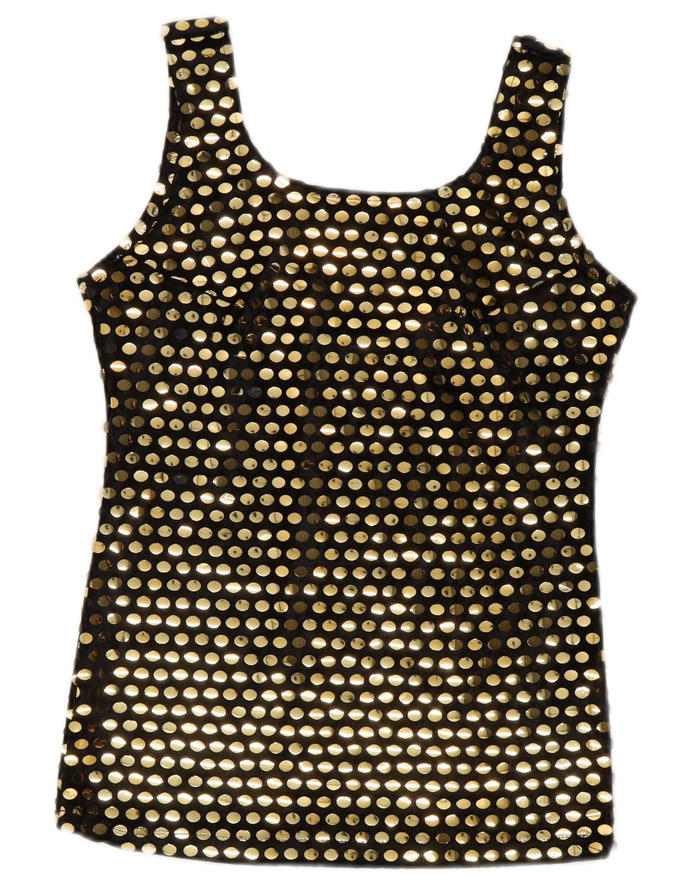 Damska bluzka bez rękawów w stylu vintage, top UK 10, mały, czarny poliester