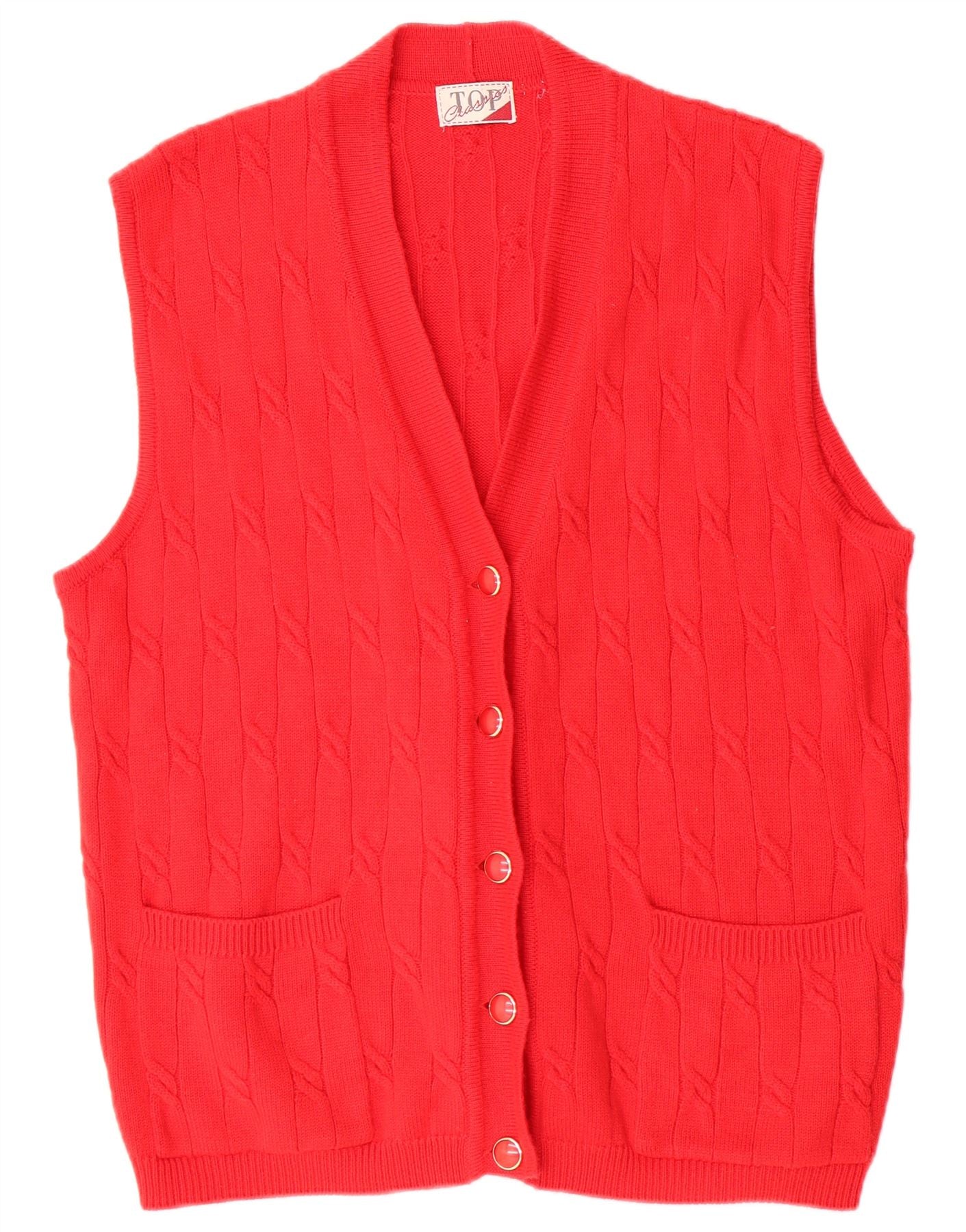 Damski sweter bez rękawów w stylu VINTAGE UK 18 XL, czerwona wełna