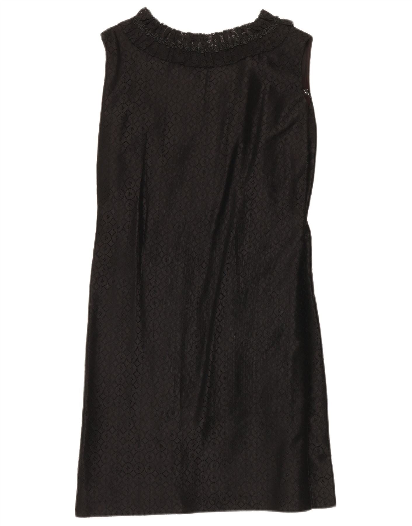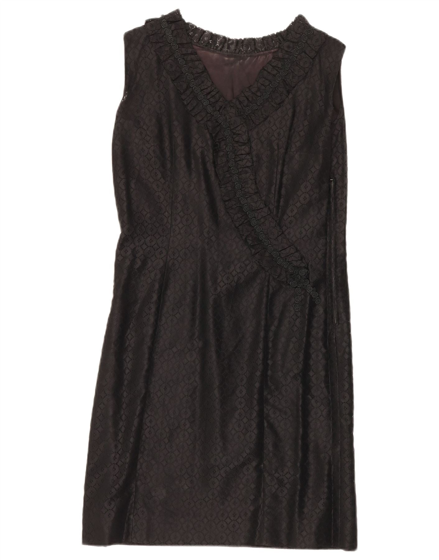 VINTAGE damska koronkowa sukienka typu shift bez rękawów UK 12, średnia czarna w kwiaty