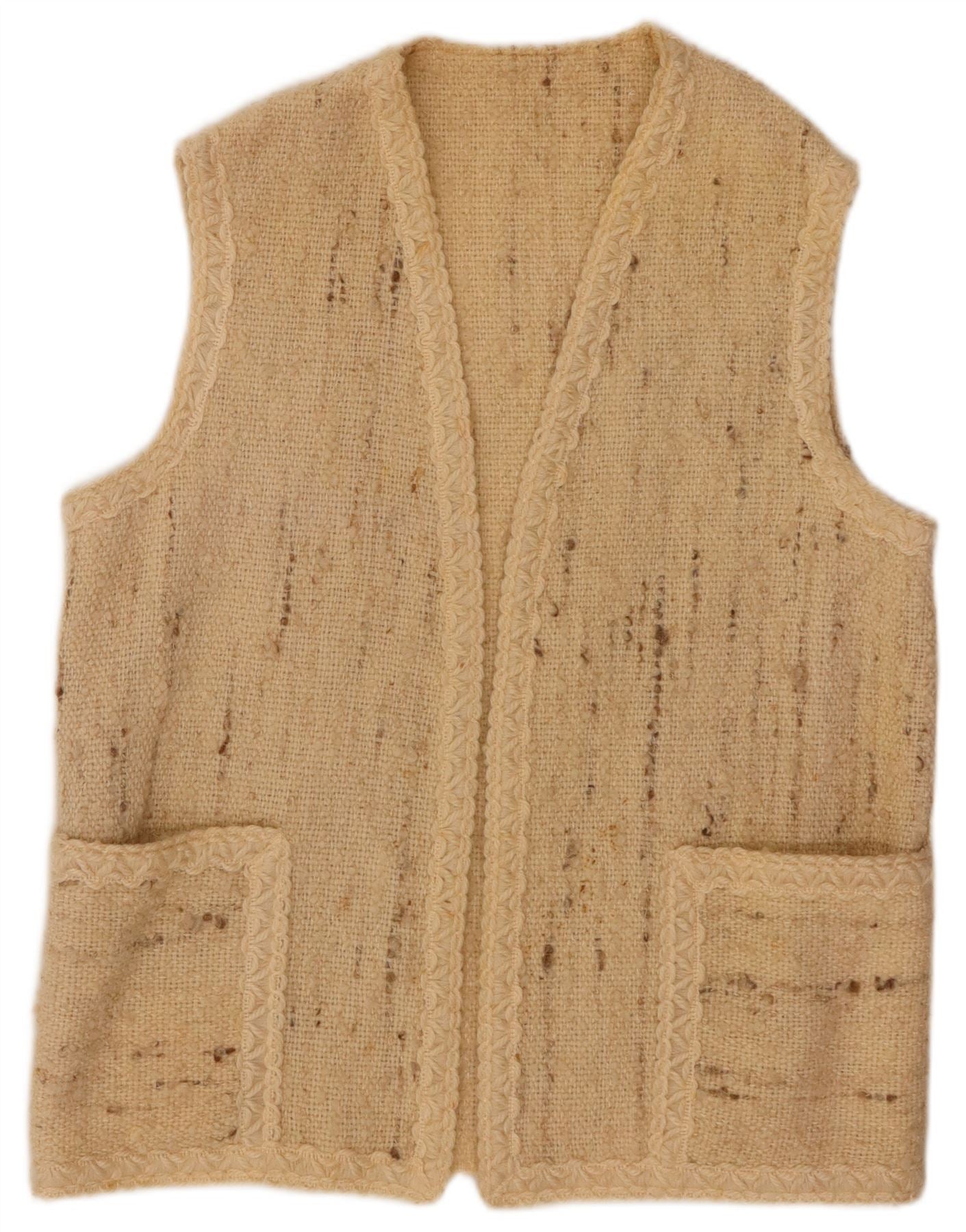 Damski sweter rozpinany bez rękawów w stylu vintage, UK 16, duży, beżowy, nakrapiany