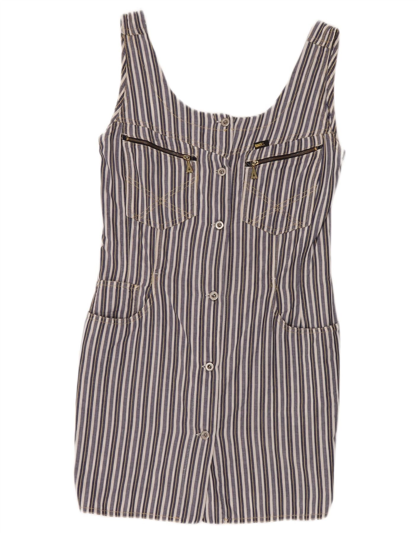 VINTAGE Damska sukienka płaszczowa bez rękawów UK 8 w małe granatowe paski
