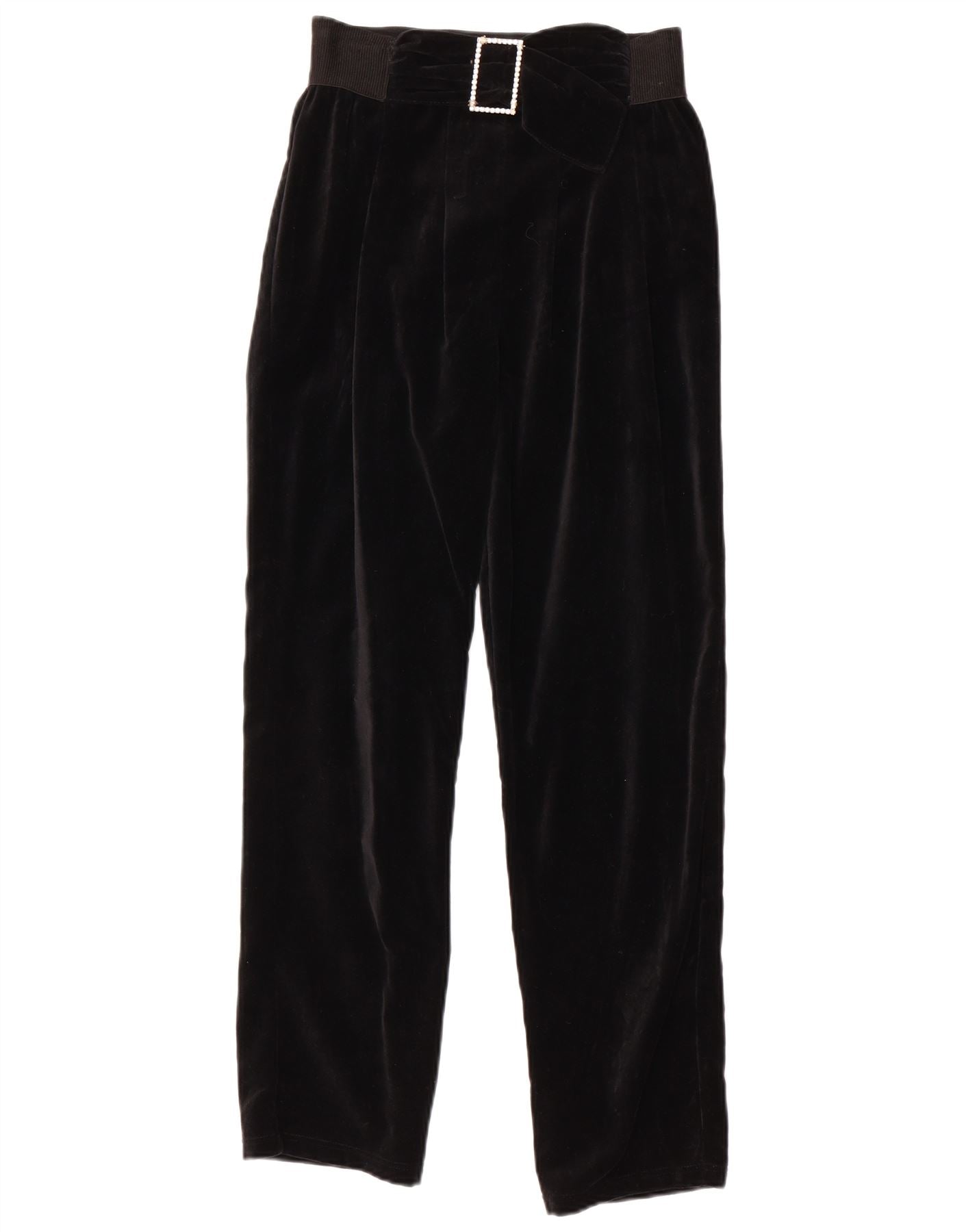 VINTAGE Womens Straight Velvet Casual Trousers W30 L27 Black Cotton