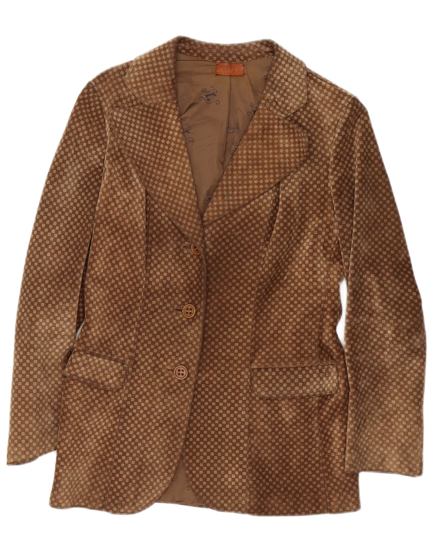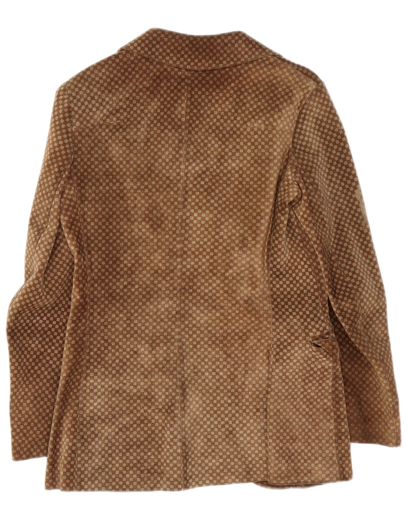 VINTAGE Damska zamszowa marynarka zapinana na 3 guziki UK 10 Mała brązowa geometryczna