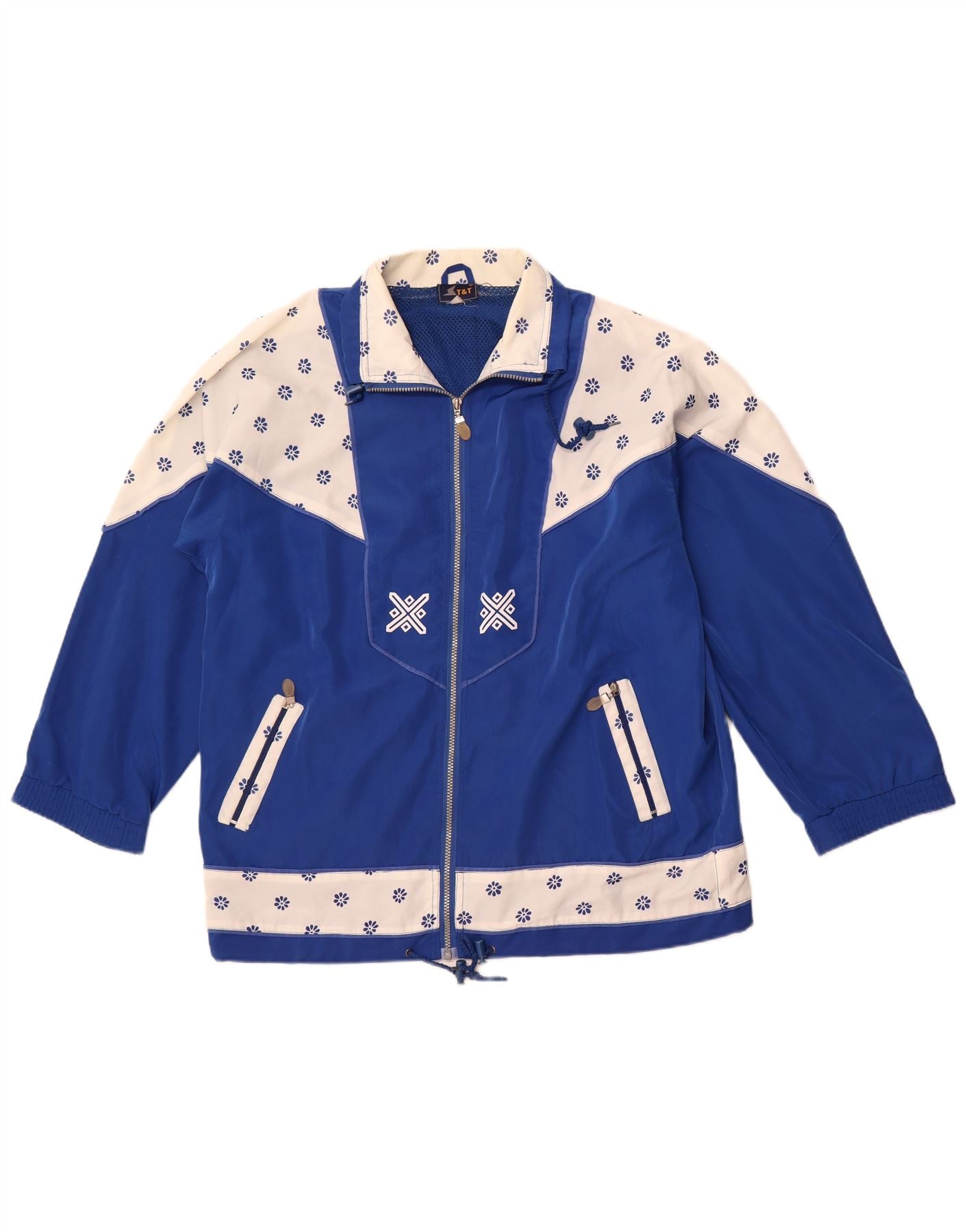 - Opis sztucznej inteligencji: Ta męska kurtka dresowa w stylu vintage jest wykonana z tkanego materiału syntetycznego. Posiada efektowny niebiesko-biały kwiatowy wzór. Dekolt z kołnierzykiem i zapięcie na zamek błyskawiczny zapewniają klasyczną konstrukcję kurtki dresowej. Długie rękawy i regularny krój zapewniają wygodę noszenia. Haftowane akcenty i kieszenie dodają funkcjonalnych detali. Ta kurtka w stylu retro jest oddychająca i idealna do aktywnego wypoczynku.