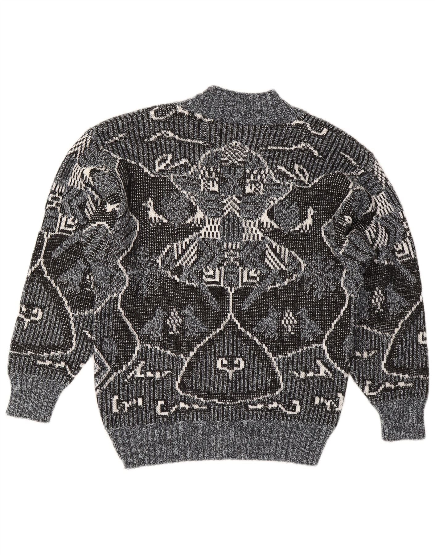 - Opis sztucznej inteligencji: Ten męski sweter z dekoltem w kształcie litery V w stylu vintage jest wykonany z miękkiej dzianiny z mieszanki poliakrylu i wełny. Charakteryzuje się uderzającym szarym, czarnym i białym geometrycznym abstrakcyjnym wzorem. Dekolt w kształcie litery V zapewnia klasyczną sylwetkę. Długie rękawy zakończone wygodnymi mankietami. Regularny krój zapewnia wygodę noszenia. Ten sweterkowy model łączy ciepło z charakterystycznym stylem retro.