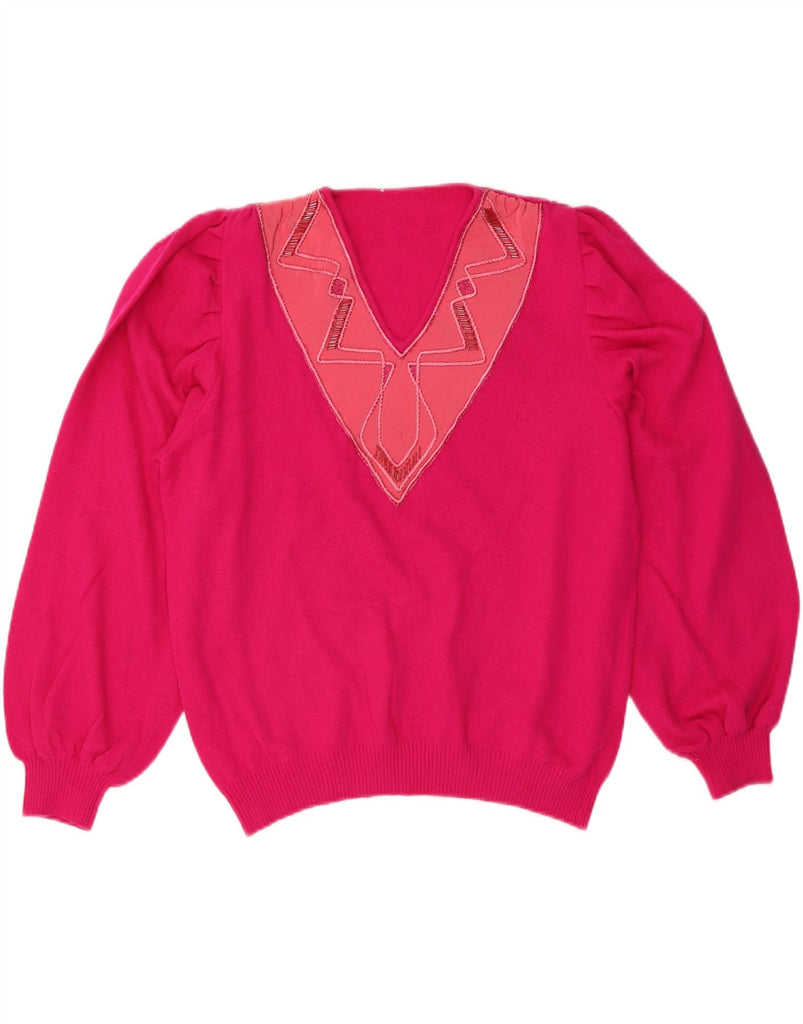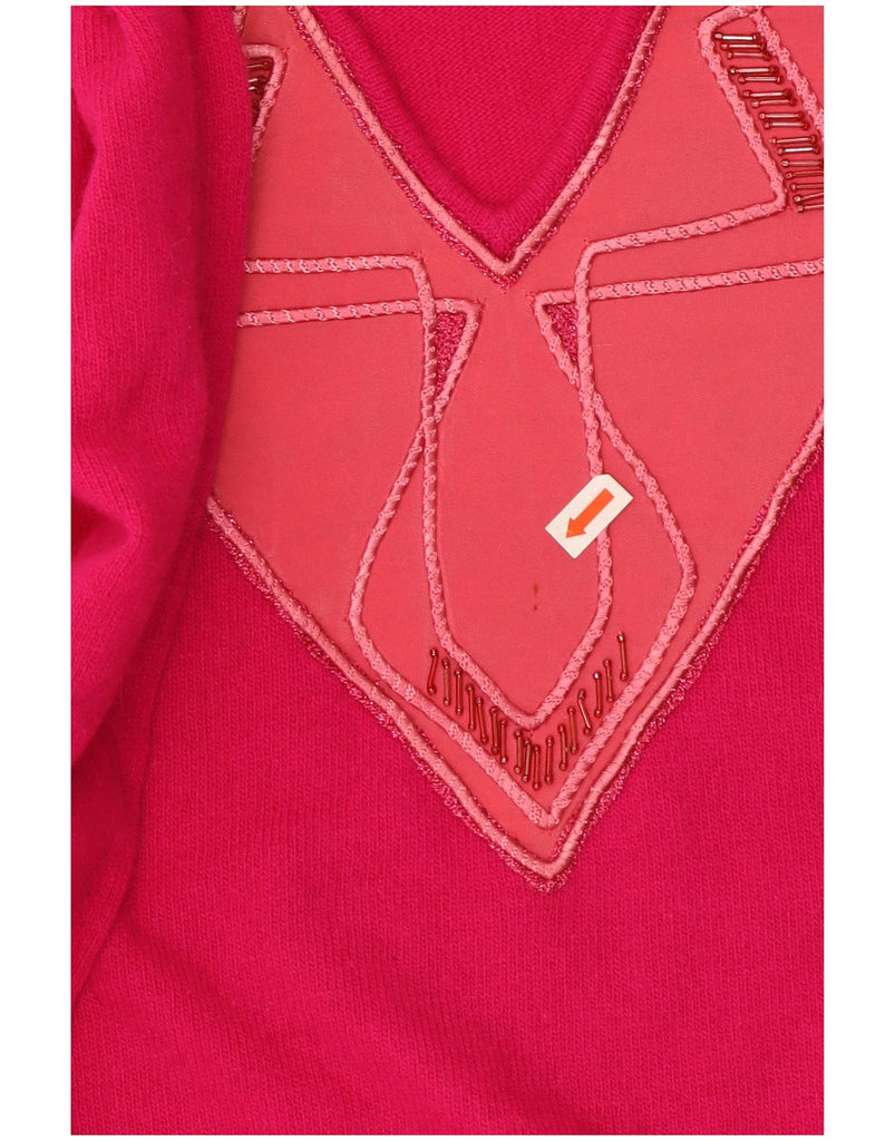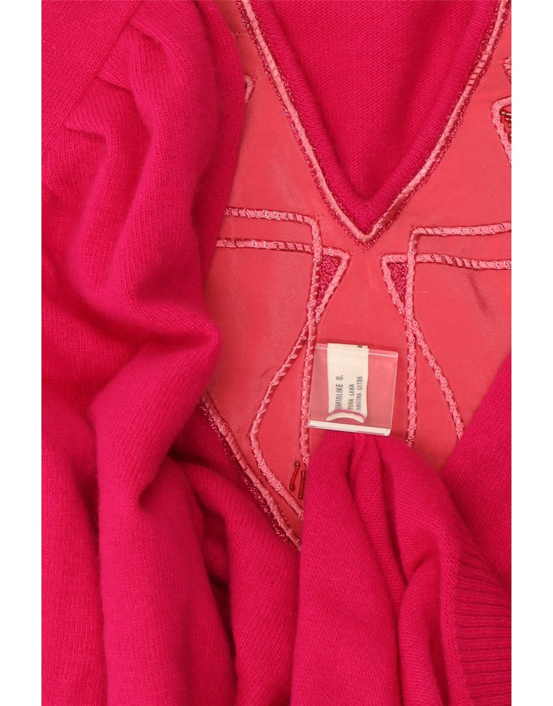 Damski sweter VINTAGE z dekoltem w kształcie litery V IT 50 XL Różowa wełna