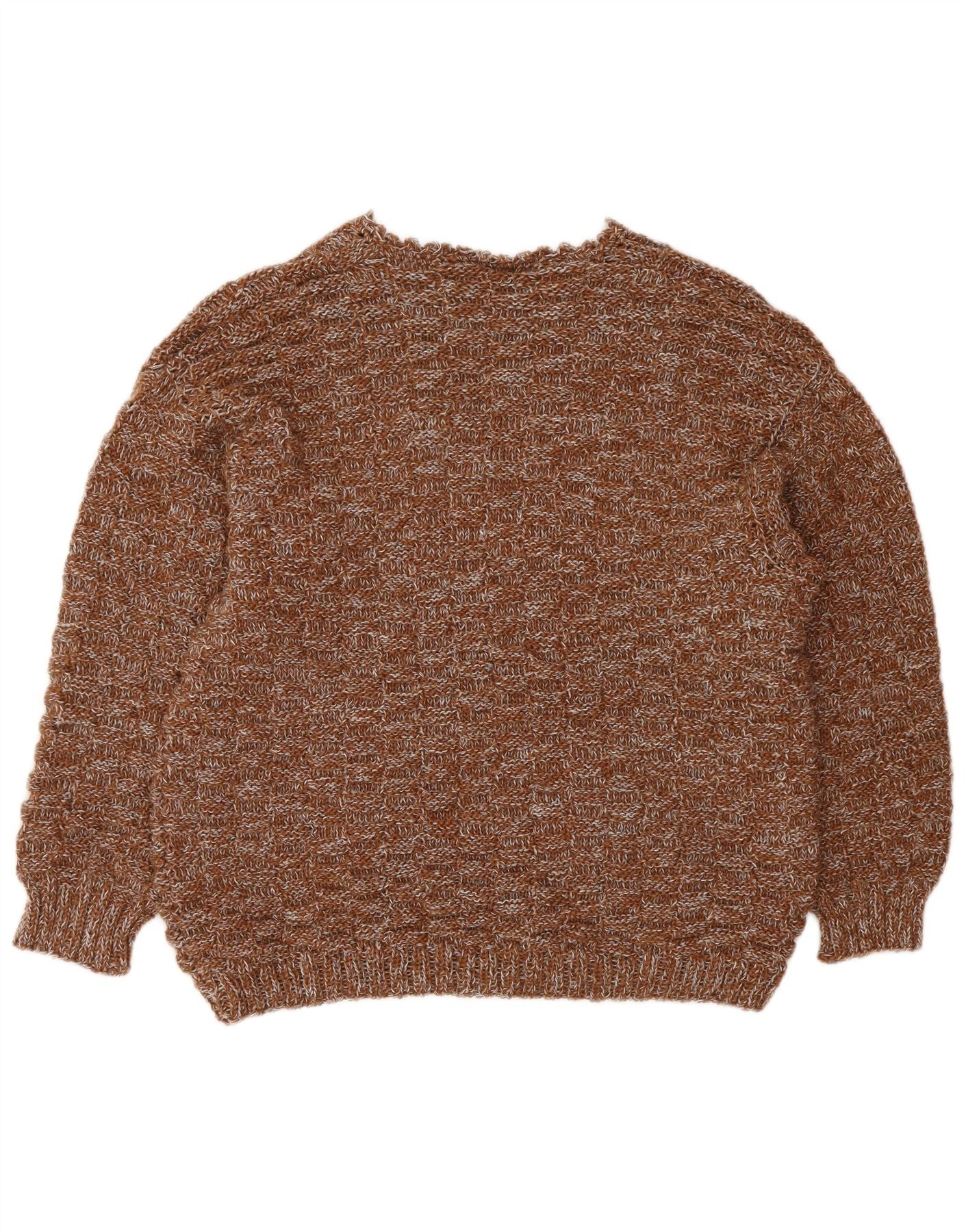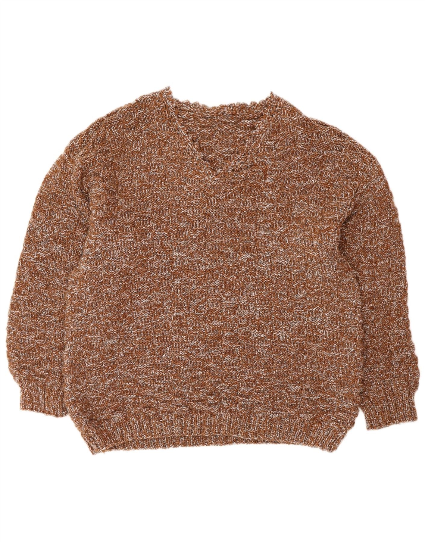 Sweter damski VINTAGE z dekoltem w kształcie litery V, UK 16, duży, brązowy, nakrapiany