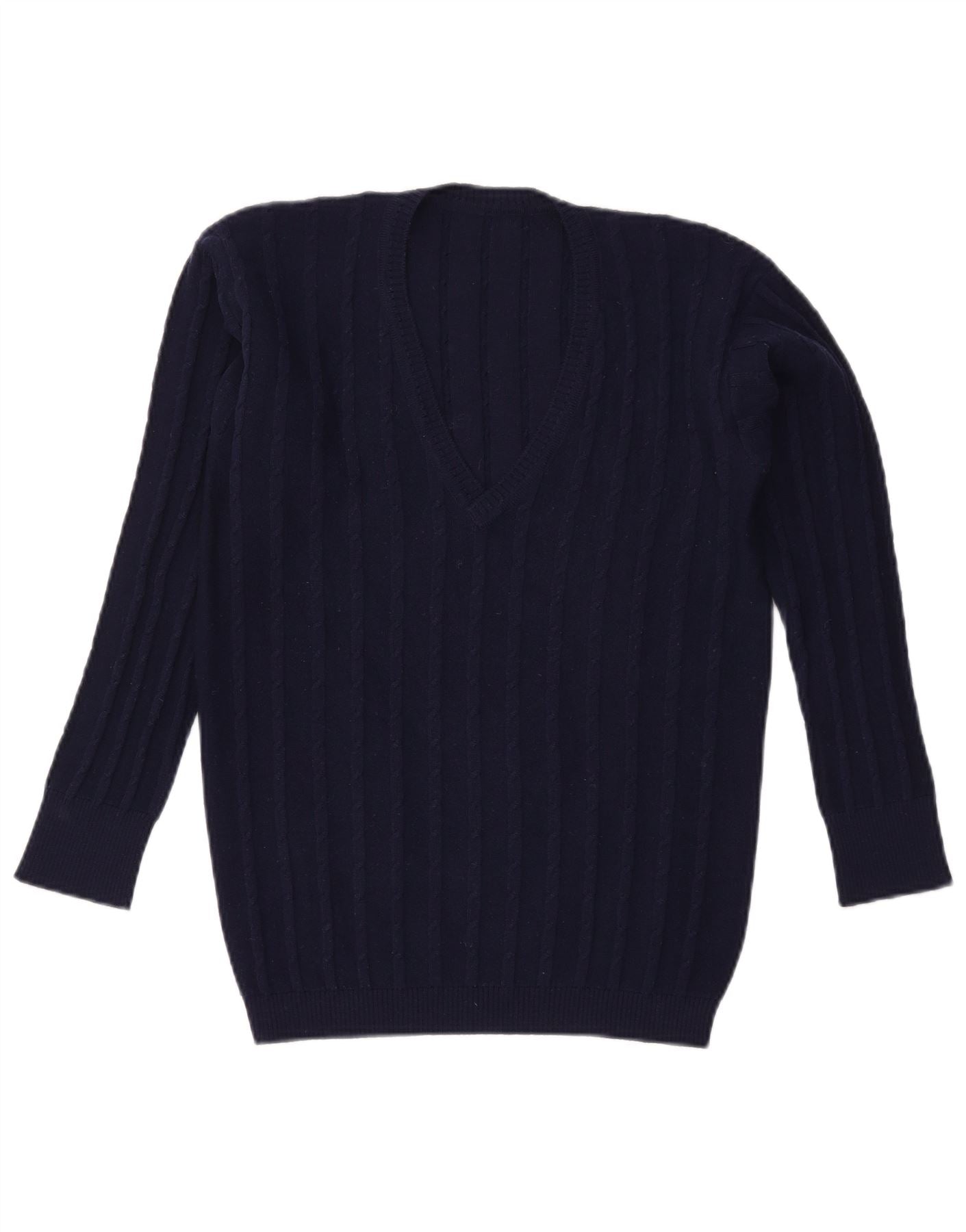 Sweter damski VINTAGE z dekoltem w kształcie litery V, UK 16, duży, granatowy
