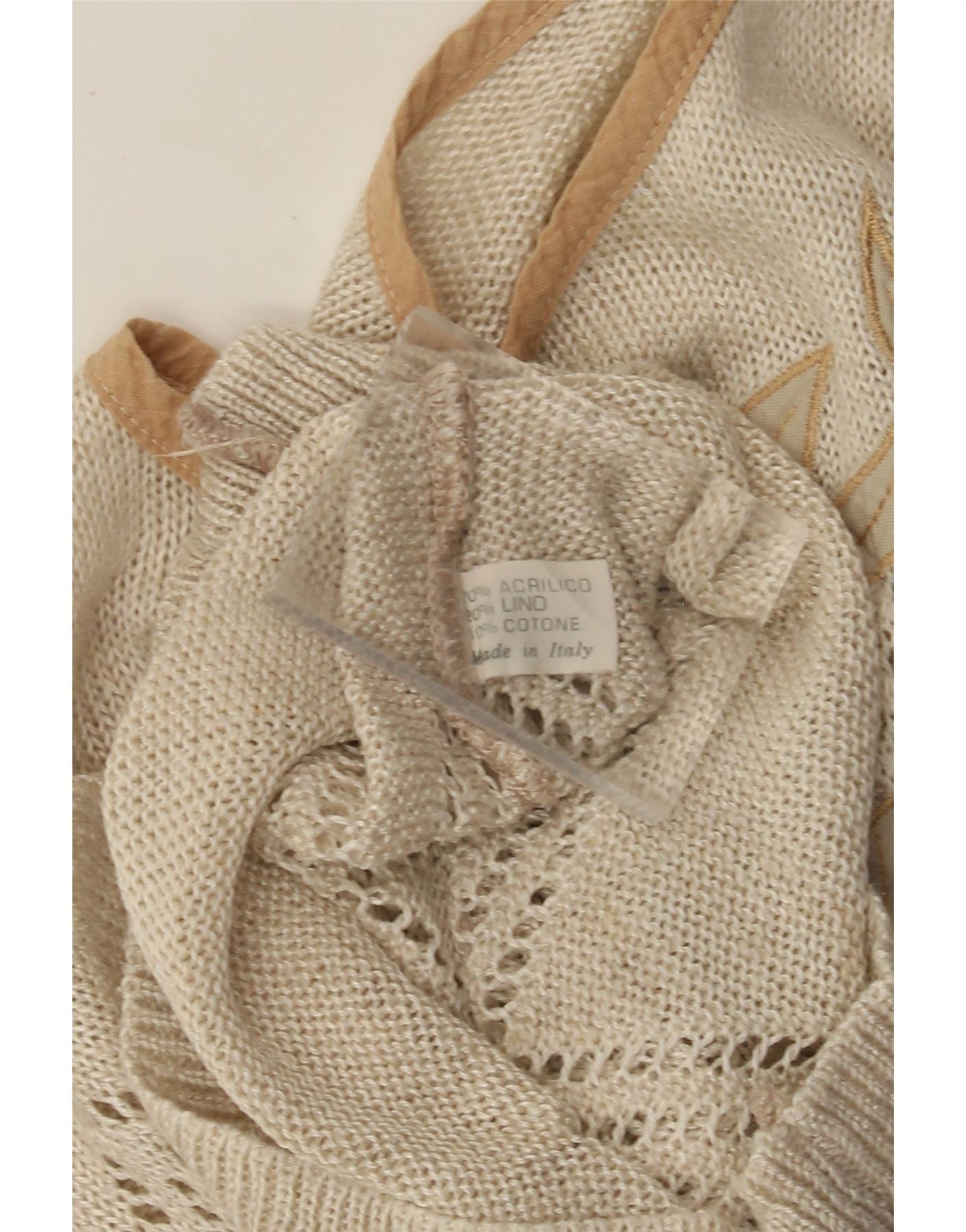 - Opis sztucznej inteligencji: Ten damski podkoszulek w stylu vintage z kamizelką jest wykonany z beżowej dzianiny będącej mieszanką akrylu, lnu i bawełny. Całość ozdobiona jest delikatnym wzorem jodełkowym. Przód zdobi elegancka haftowana grafika z motywem kwiatowym. Krój bez rękawów i okrągły dekolt nadają klasycznej sylwetce. Regularny krój zapewnia wygodę noszenia. Ten sweterek łączy w sobie artystyczny urok z wyrafinowanymi detalami.