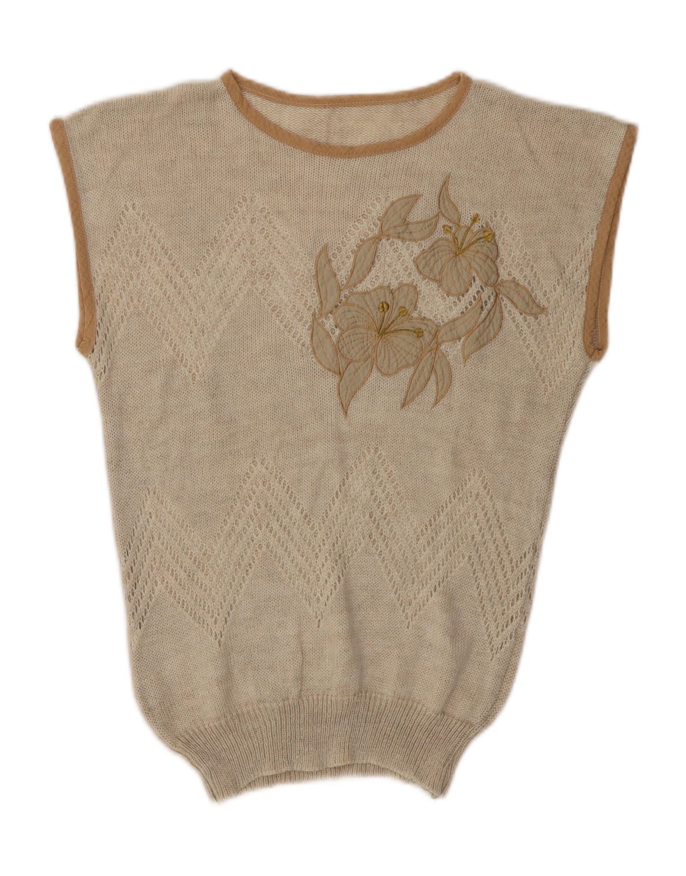 Home > Damskie > Odzież Depopa > Vintage damski podkoszulek z kamizelką UK 12 średni beżowy kwiatowy akryl