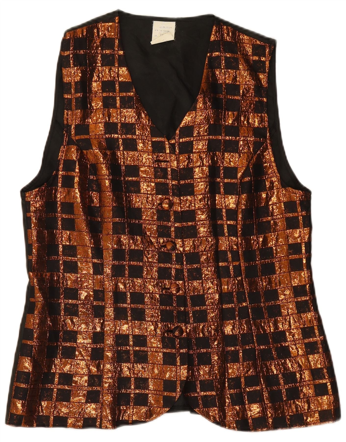 Kamizelka damska VINTAGE UK 14, poliester w brązową kratkę