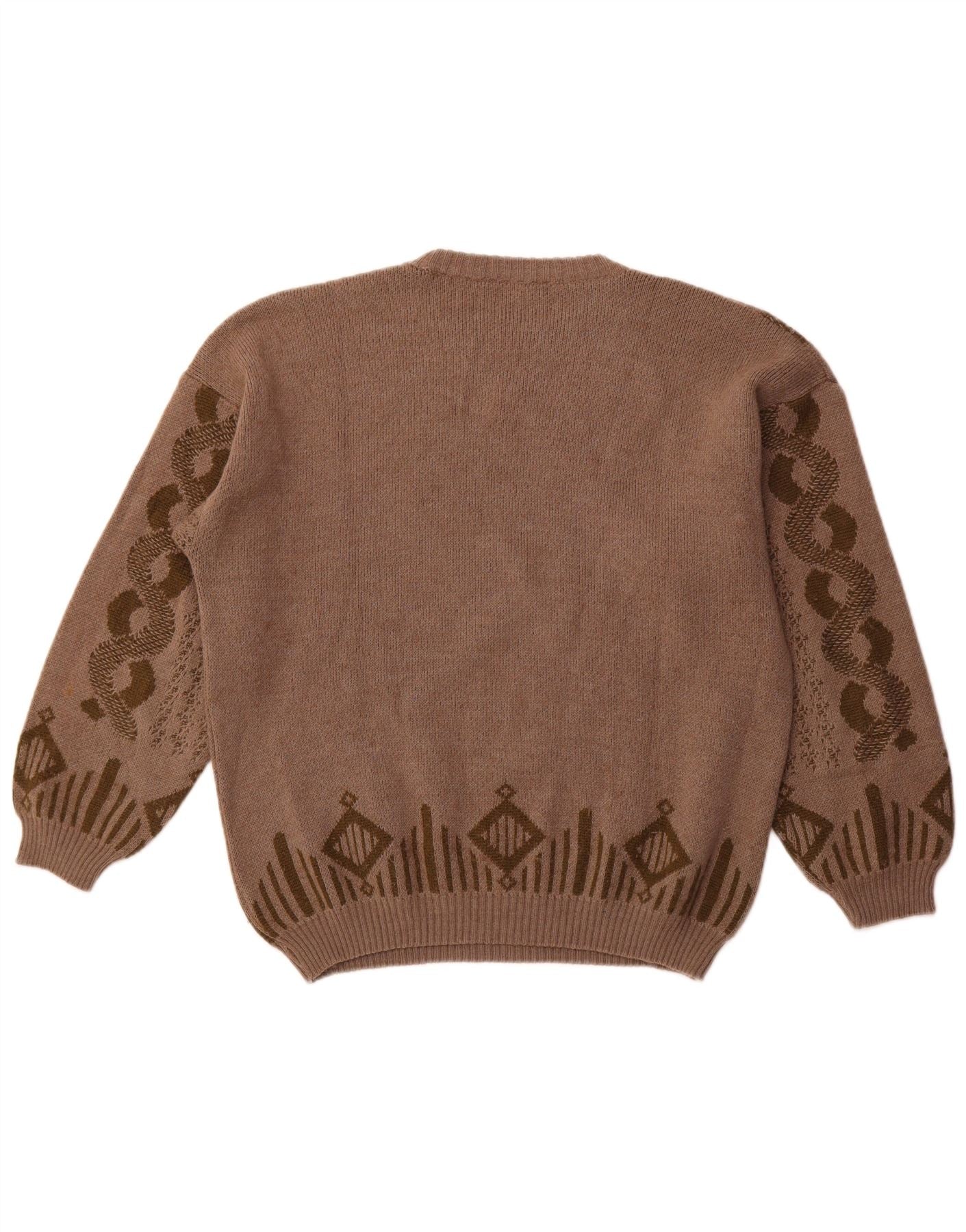 Damski sweter oversize VOGUE z okrągłym dekoltem UK 18 XL, brązowy, geometryczny