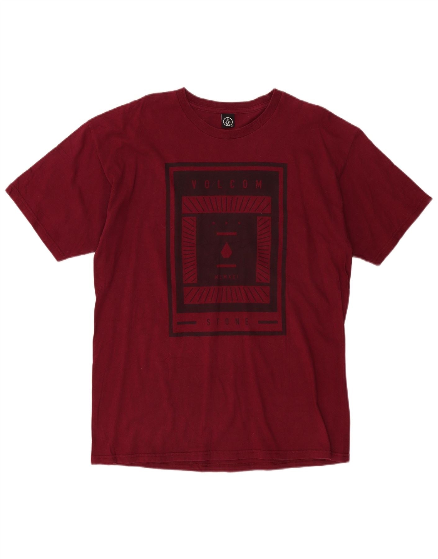 Męski T-shirt z grafiką Volcom, duży, bordowy