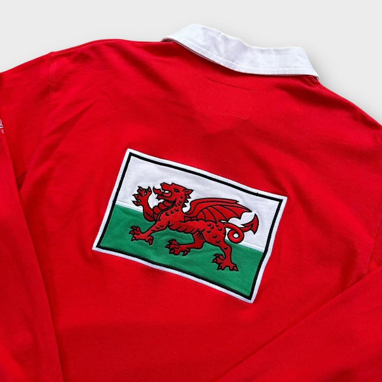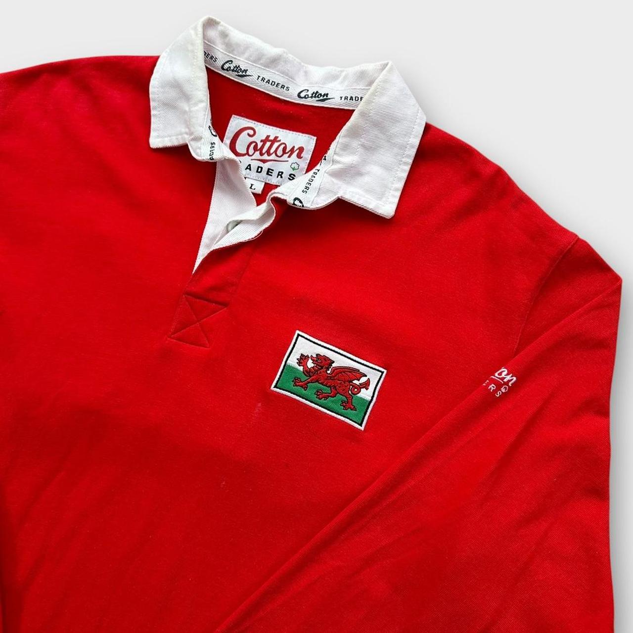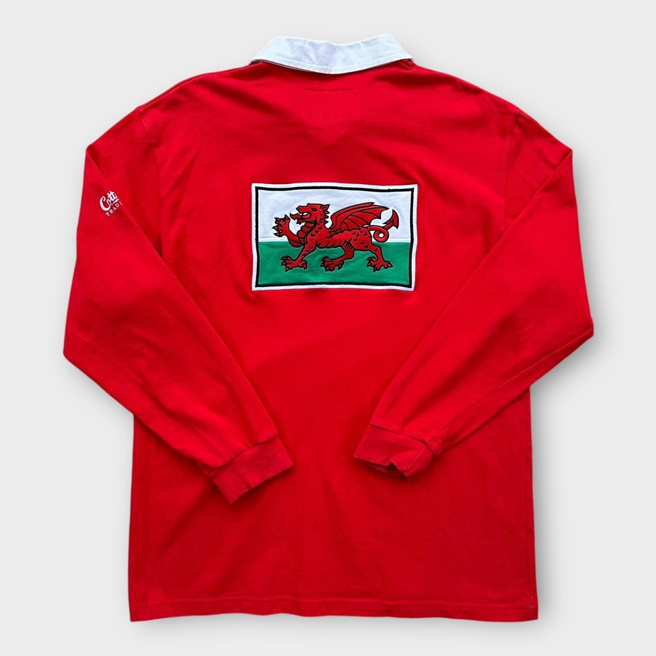 Koszulka do rugby z Walii w stylu vintage z lat 90. firmy Traders z bawełny w kolorze czerwono-białym, z haftowanymi logo na piersi i plecach