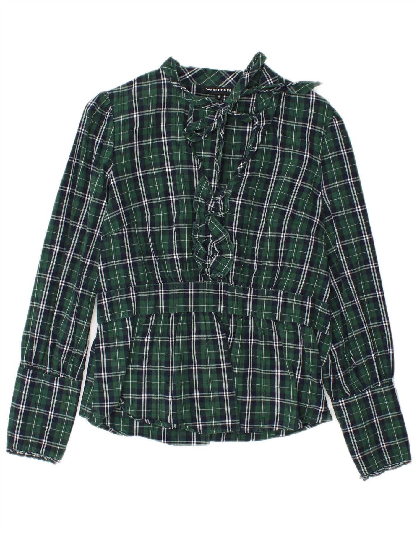 Damska bluzka z długim rękawem WAREHOUSE UK 12 w średnią zieloną kratkę