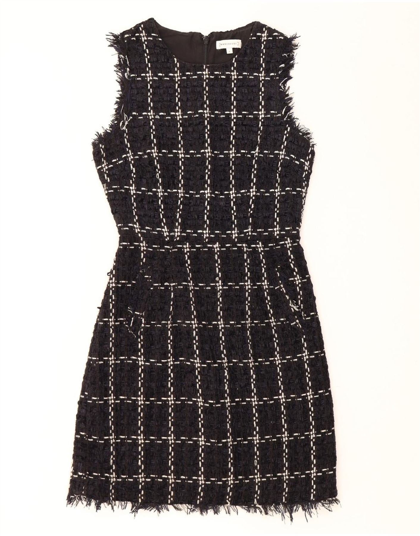 WAREHOUSE Damska sukienka płaszczowa bez rękawów UK 8 w małą granatową kratkę
