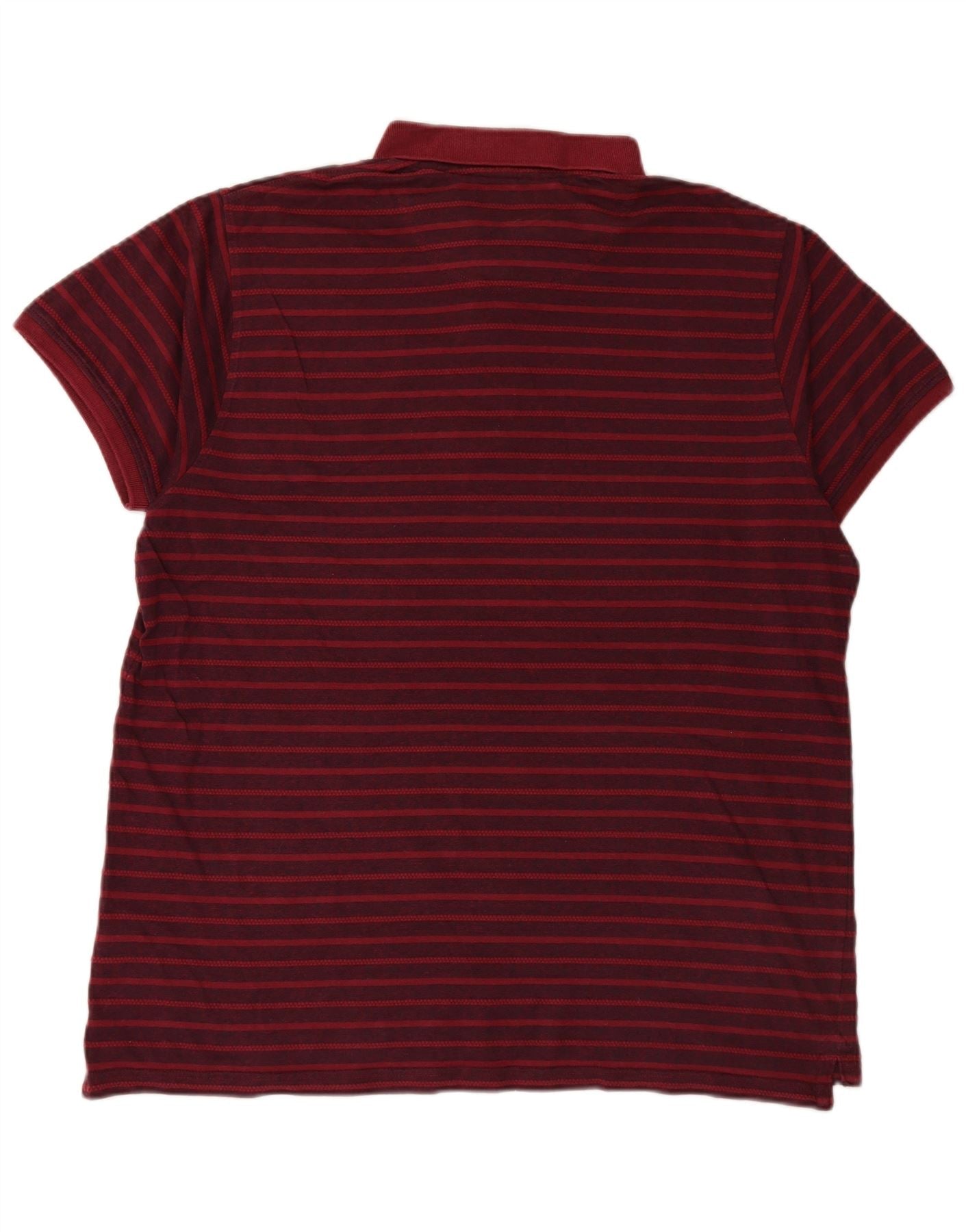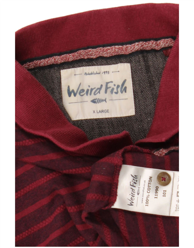 WEIRD FISH Mens Polo Shirt XL Burgundy Striped Cotton