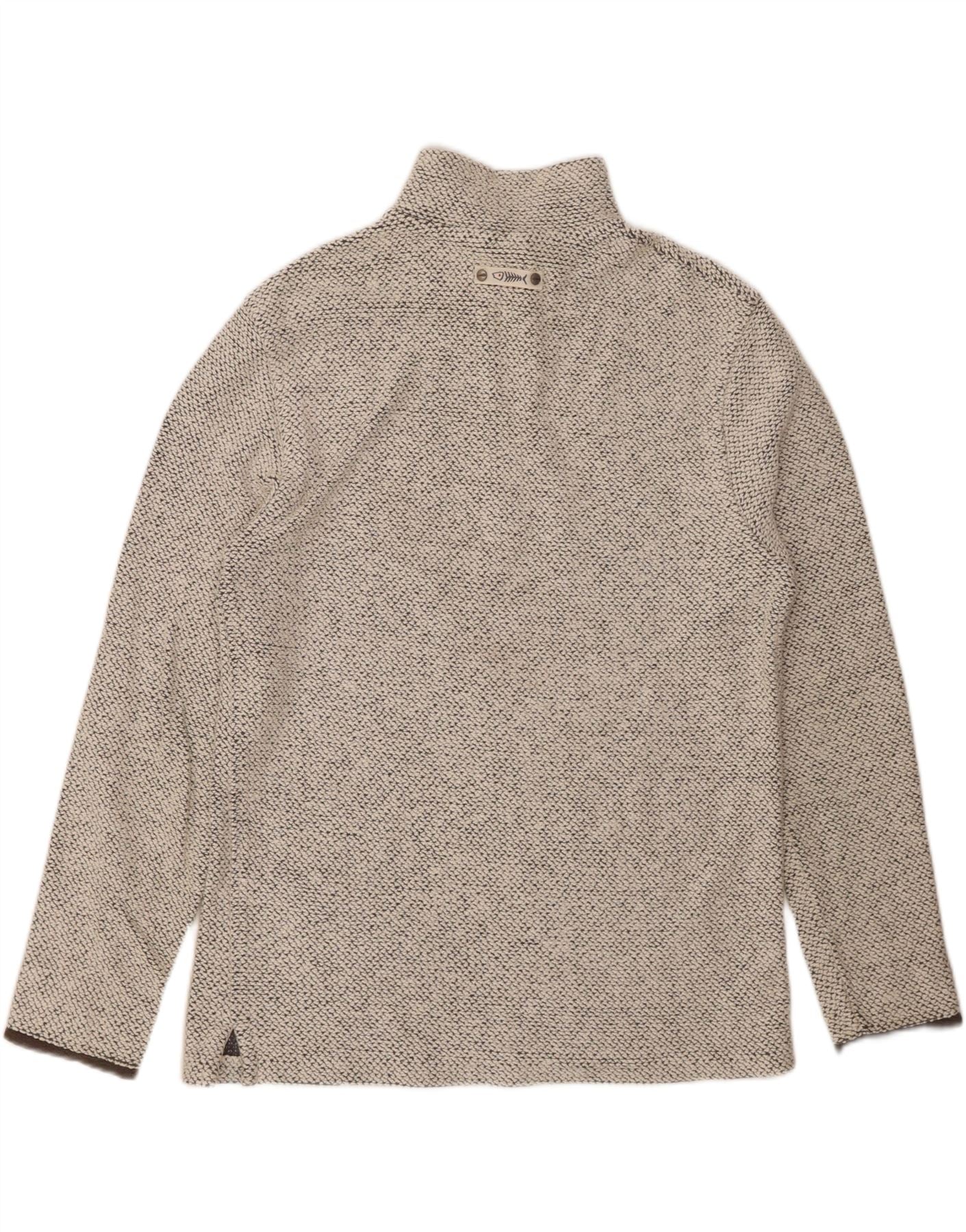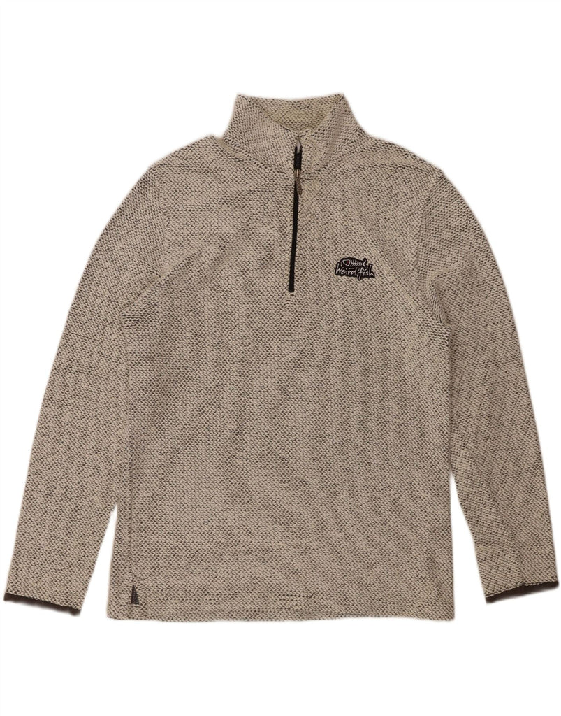 WEIRD FISH Mens Zip Neck Sweatshirt Jumper Medium White Flecked Cotton