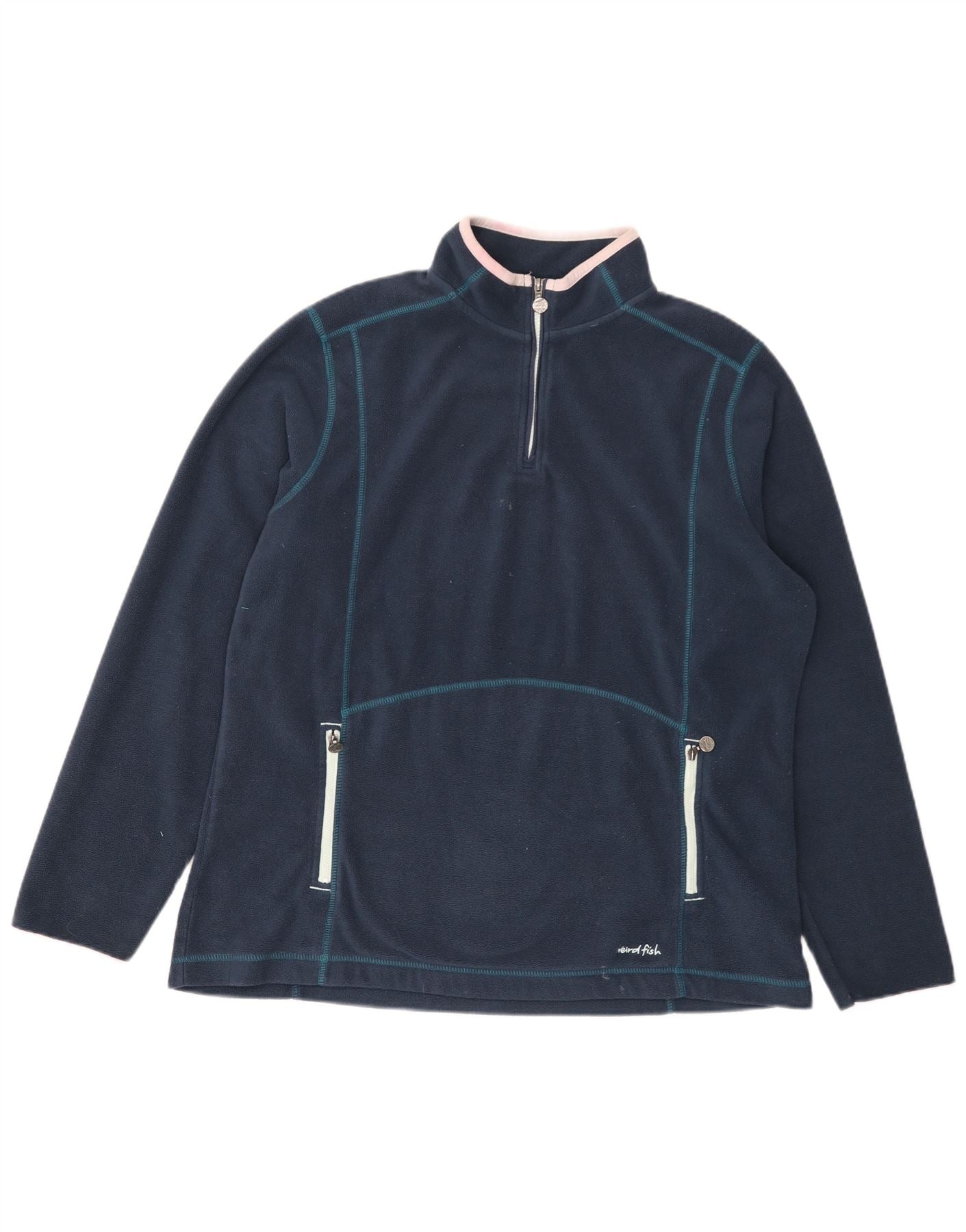 WEIRD FISH Womens Oversized Zip Neck Fleece Jumper UK 18 XL Navy Blue