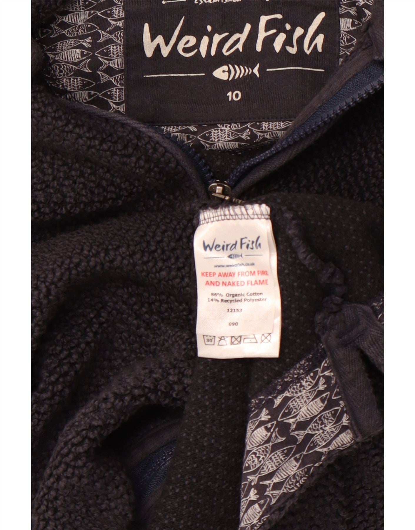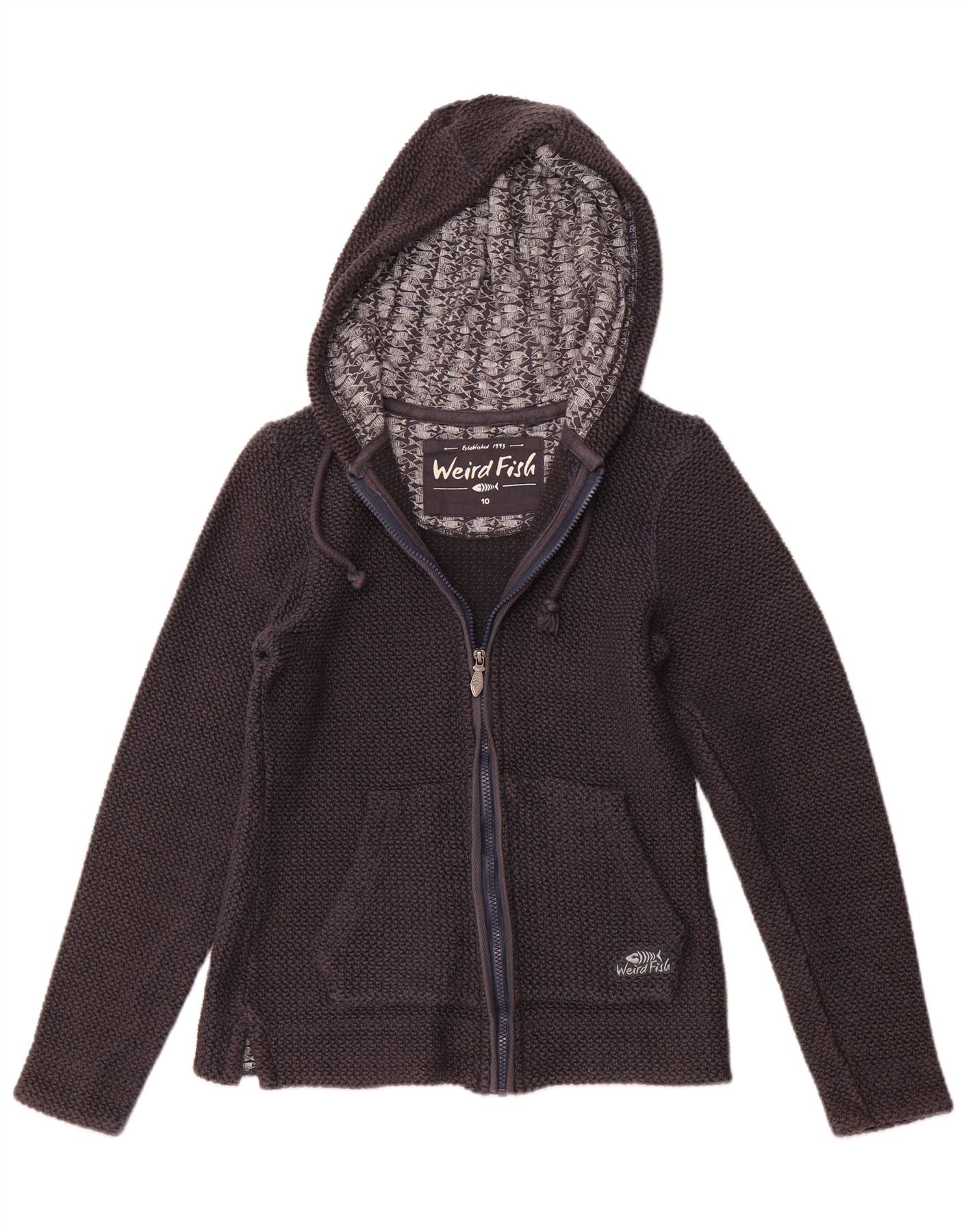 Damski sweter z kapturem i zamkiem WEIRD FISH UK 10, mały, granatowy, bawełniany