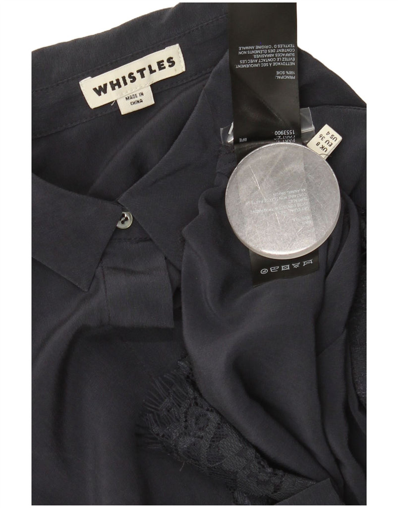 WHISTLES Womens Short Sleeve Shirt UK 8 Small Navy Blue Silk