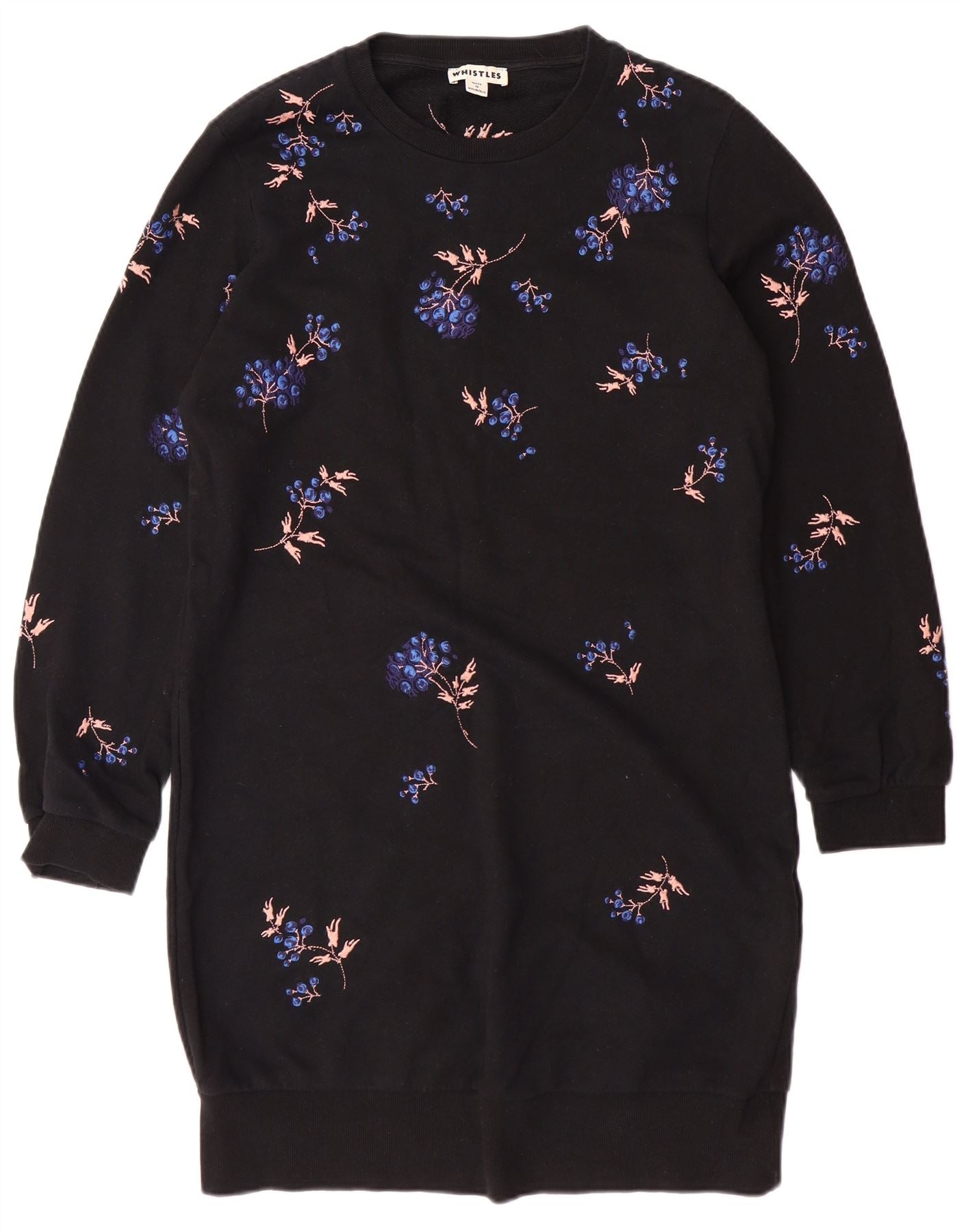 WHISTLES Damska bluza dresowa, sukienka UK 10, mała, czarna, z bawełny w kwiaty
