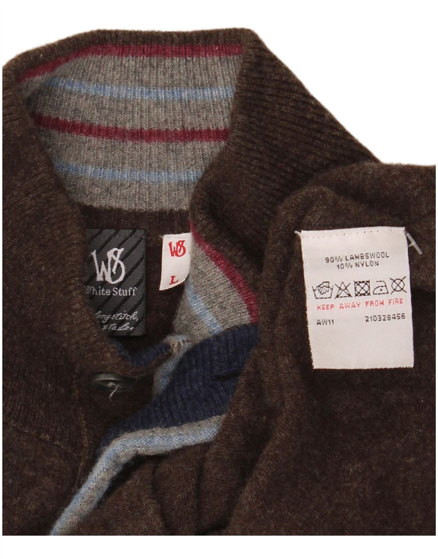 WHITE STUFF Męski sweter zapinany na guziki, duży, brązowy, z owczej wełny