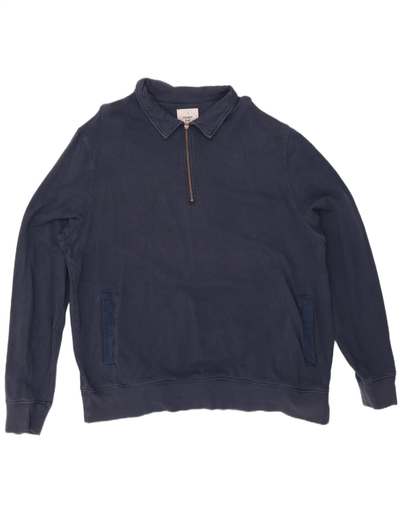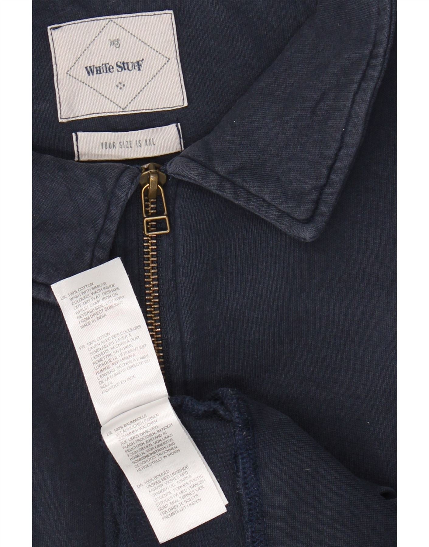 WHITE STUFF Męski sweter polo z dekoltem w serek 2XL Granatowy, bawełniany