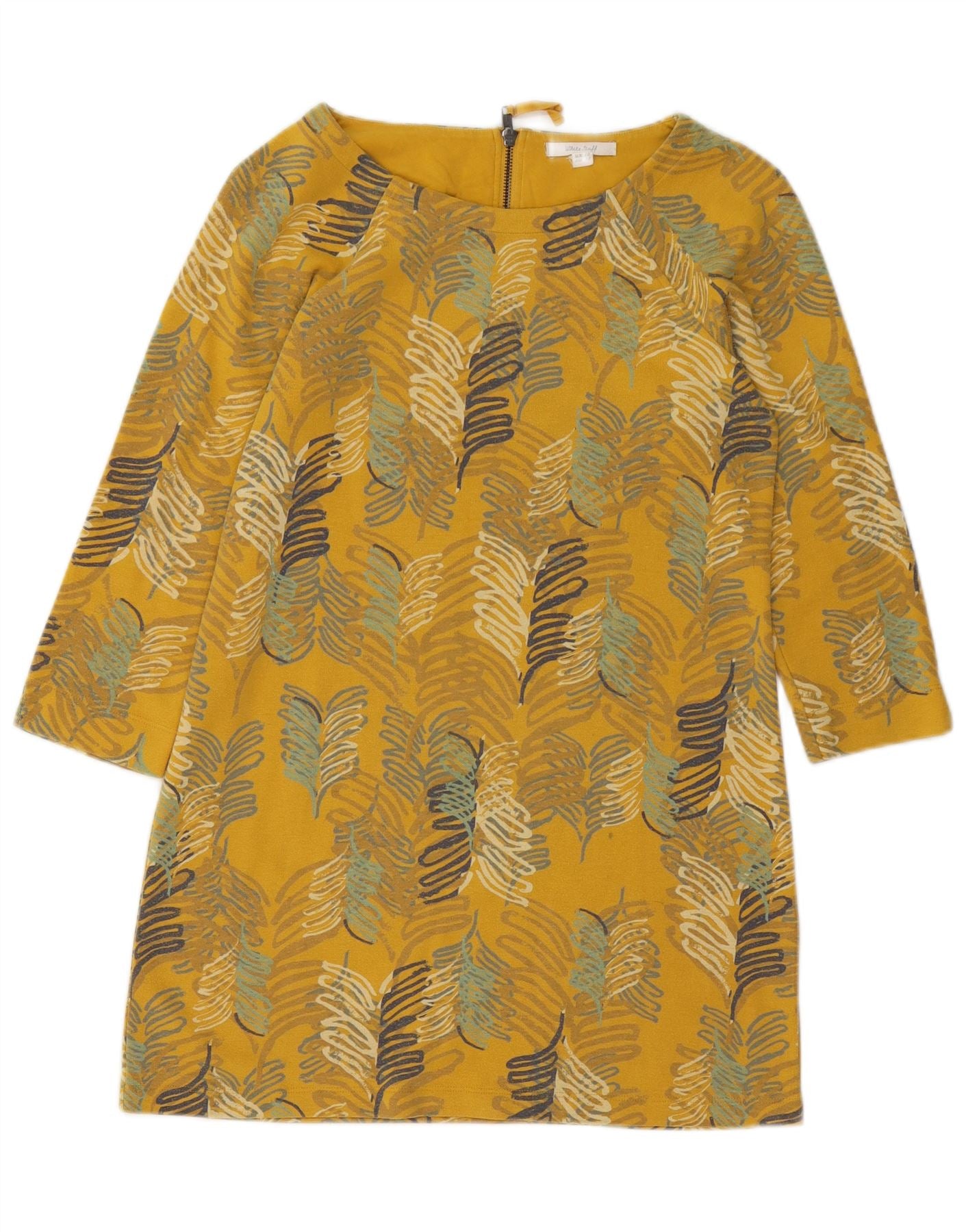 WHITE STUFF Damska sukienka typu shift z rękawem 3/4 UK 10, mała, żółta w kwiaty, bawełniana