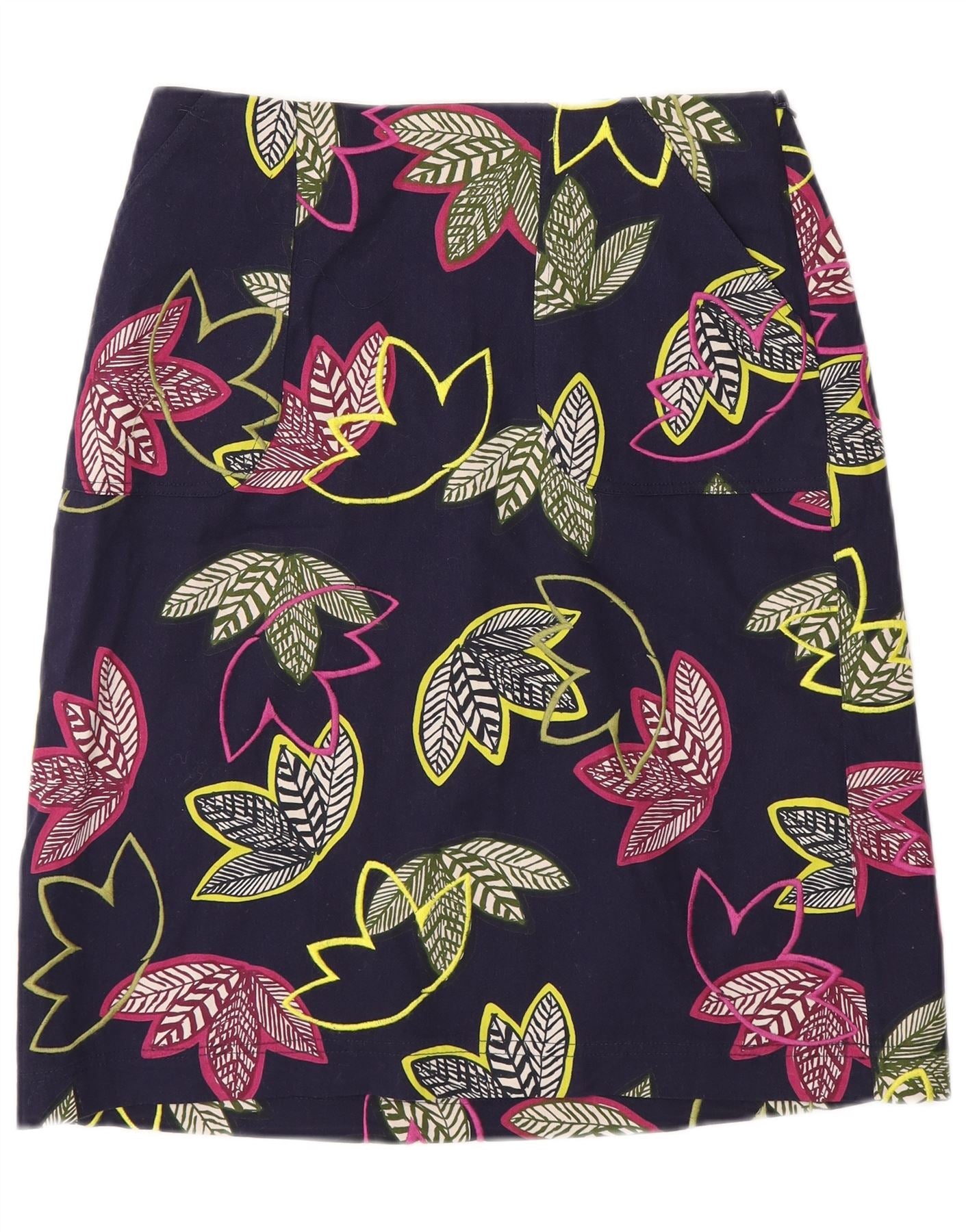 WHITE STUFF Womens A-Line Skirt UK 8 Small W26 Navy Blue Floral Cotton